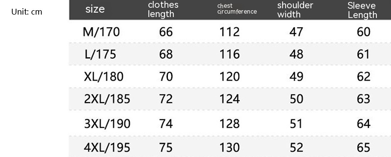 Size: 170,175,180,185,190,195