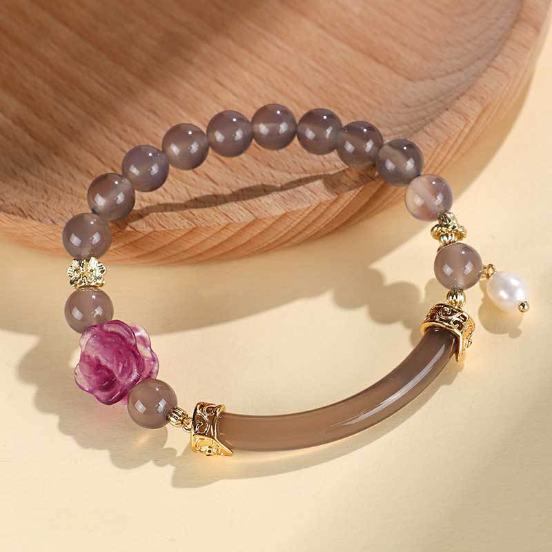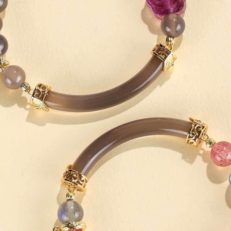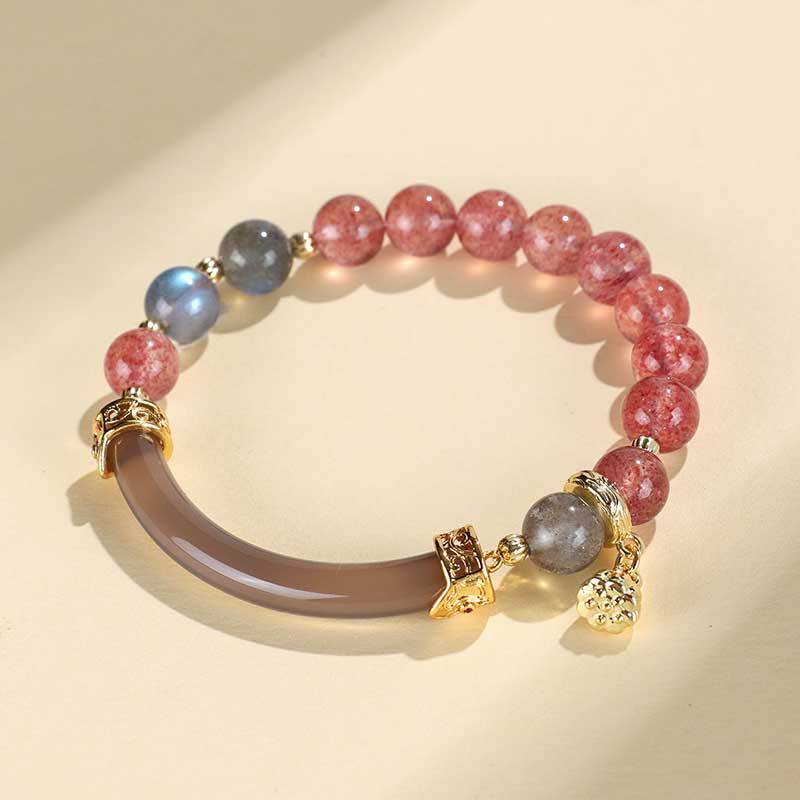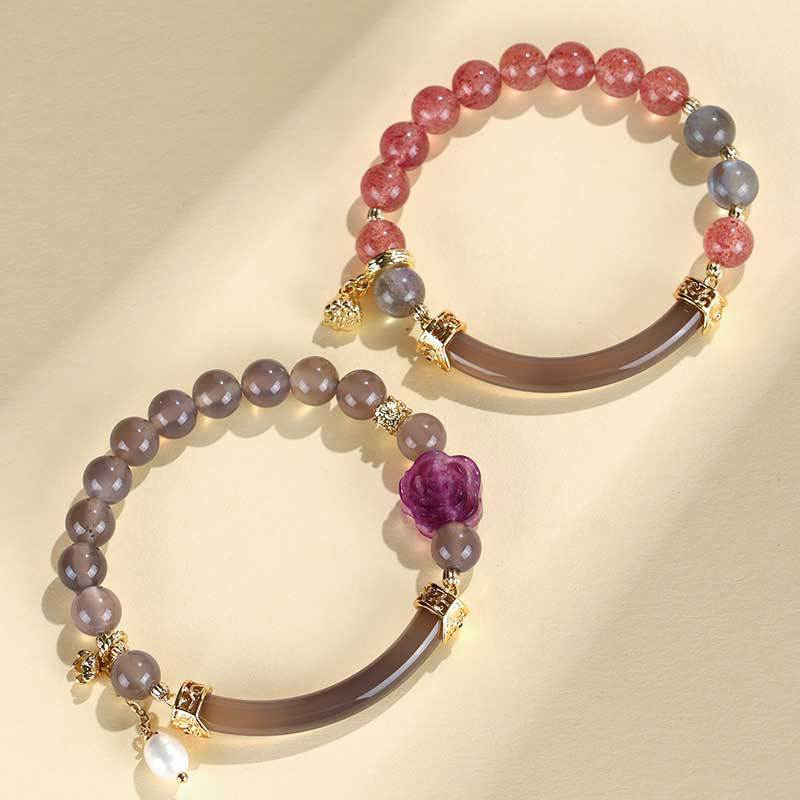 Color: Strawberry Quartz gray moonlight half bracelet bracelet, gray moonlight fluorite rose half bracelet