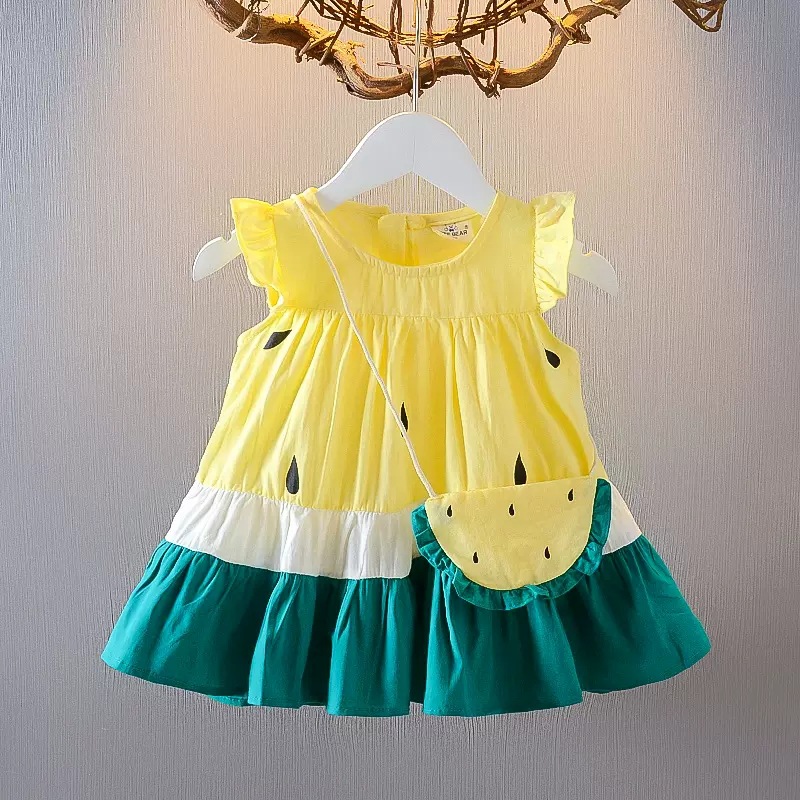 Color: watermelon seed yellow dress, pink watermelon seed dress