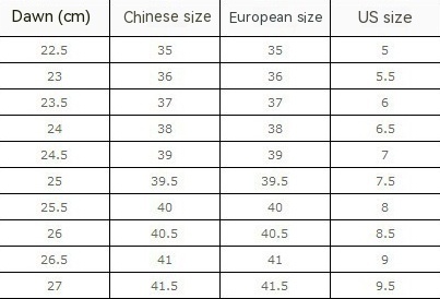 Size: 34, 35, 36, 37, 38, 39, 40, 41, 42, 43