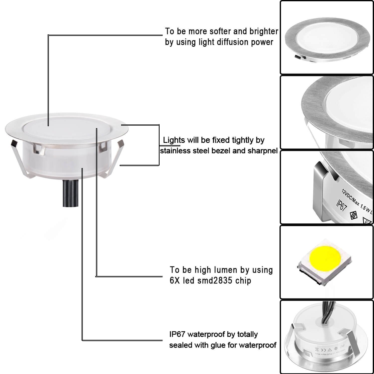 Power: 0.6 w/pcs, 6 packs, 7W set