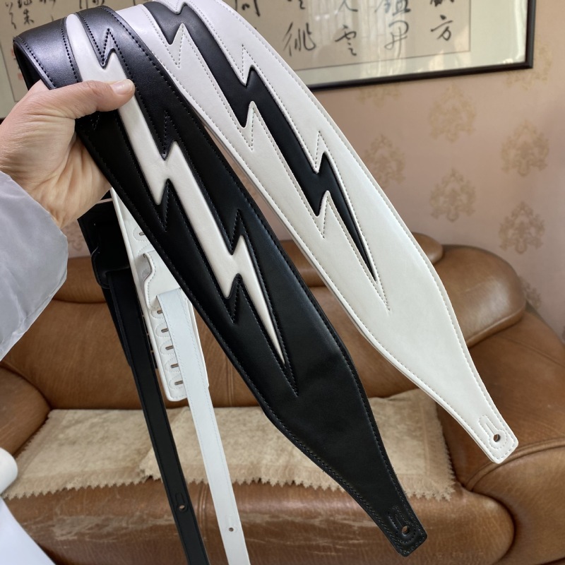 Product information:Color: white, black Material: Leather Size: shortest 135cm adjustable to 152cm Width: 7.5cm Thickness: 6mm