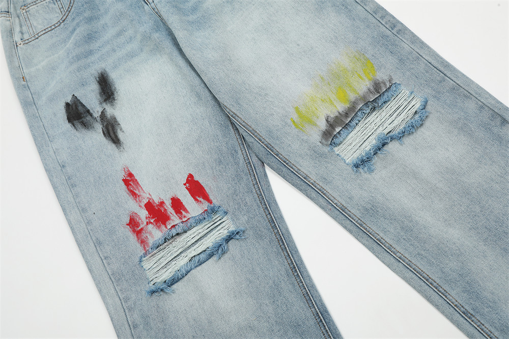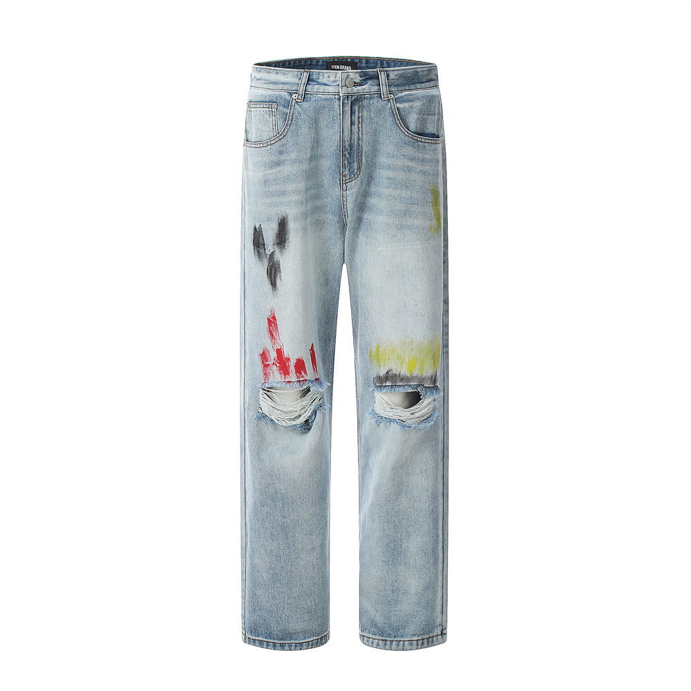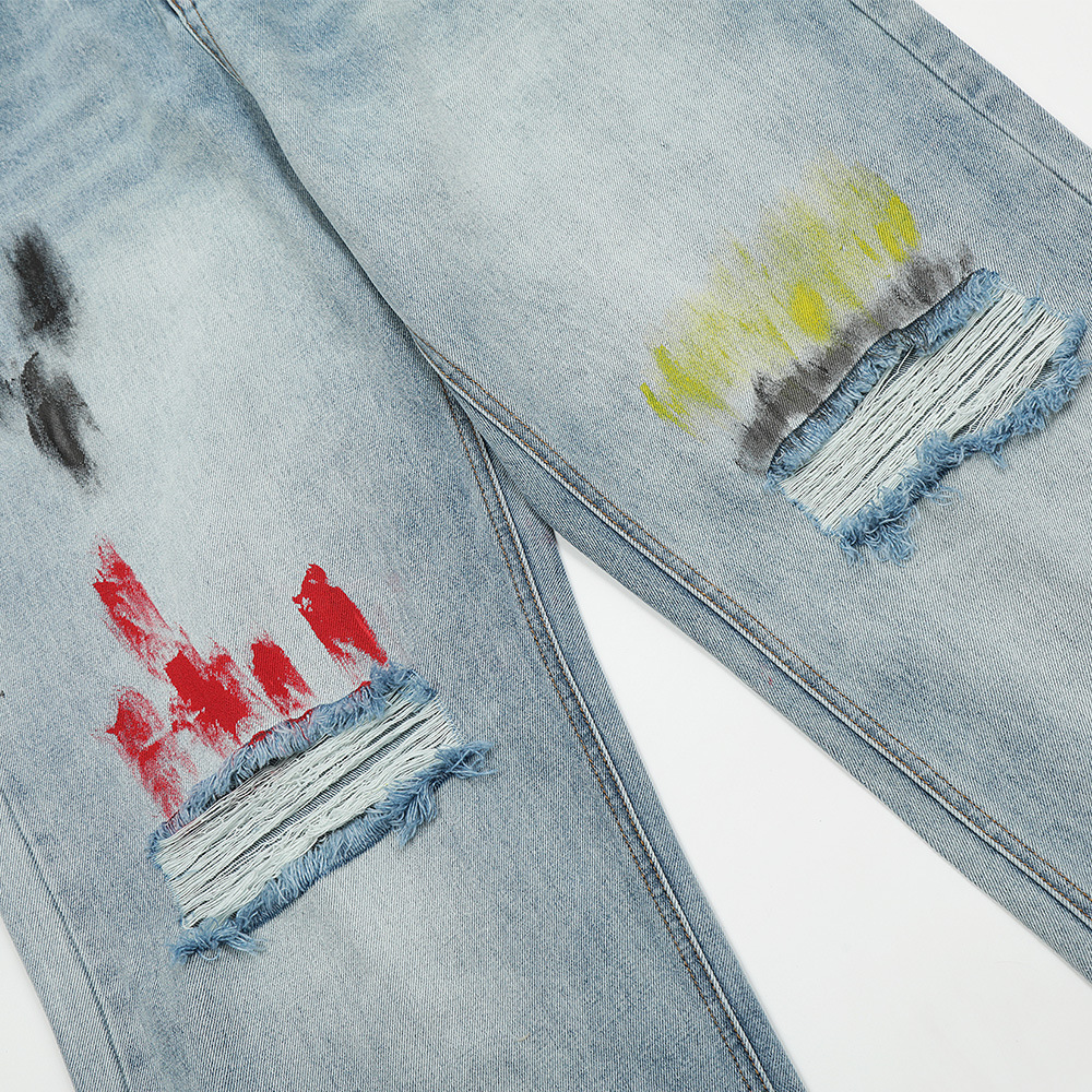 Fashion Personalized Graffiti Ripped Jeans Men