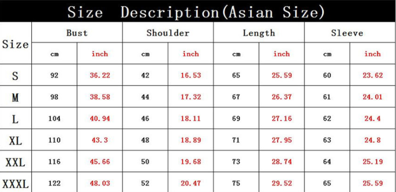 1. Asian sizes are 1 to 2 sizes smaller than European and American people. Choose the larger size if your size between two sizes. Please allow 2-3cm differences due to manual measurement. 2. Please check the size chart carefully before you buy the item, if you don't know how to choose size, please contact our customer service. 3.As you know, the different computers display colors differently, the color of the actual item may vary slightly from the following images.