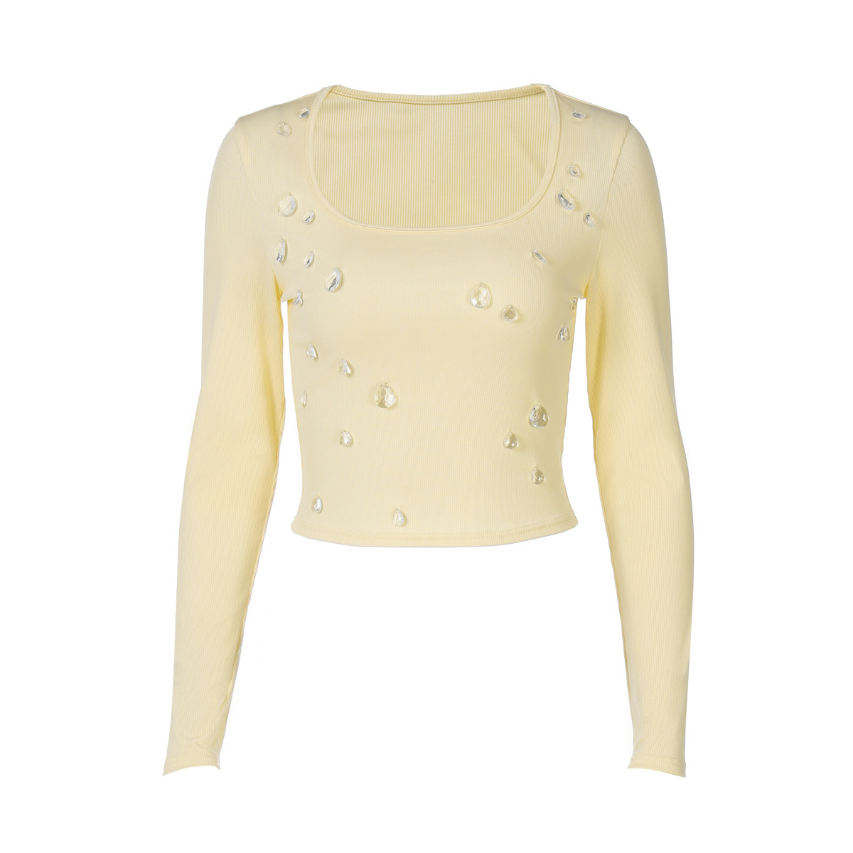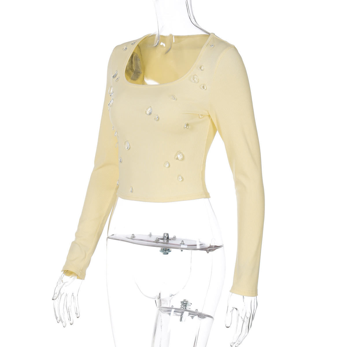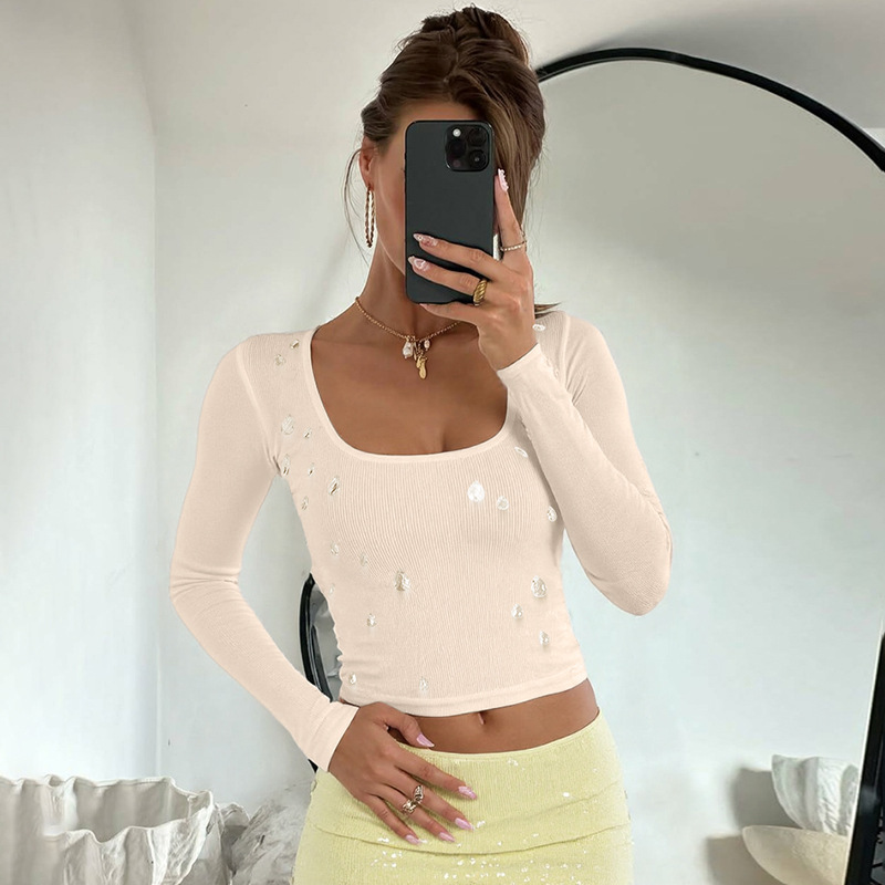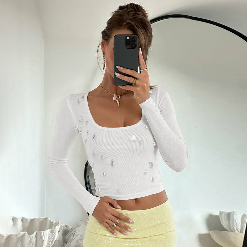 Fashion Personalized Water Drop Accessories Slim Fit U-neck Long-sleeved T-shirt