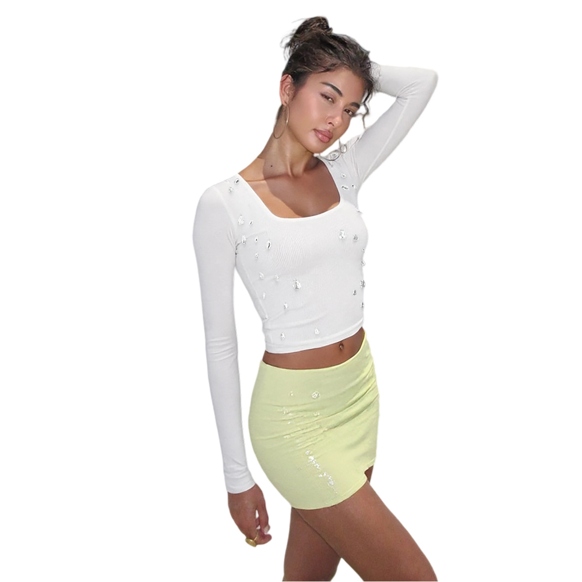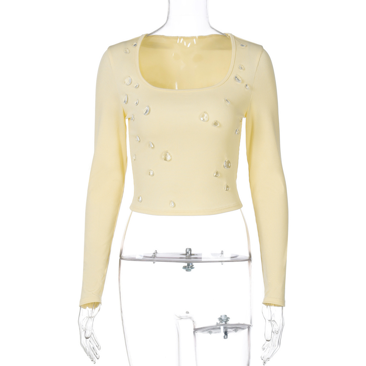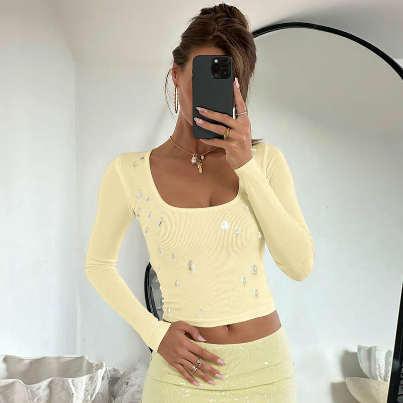 Fashion Personalized Water Drop Accessories Slim Fit U-neck Long-sleeved T-shirt