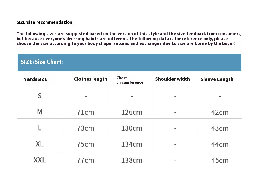 Size: M,L,XL,XXL