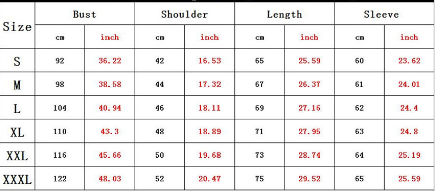 Size: S, M, L, XL, XXL, XXXL