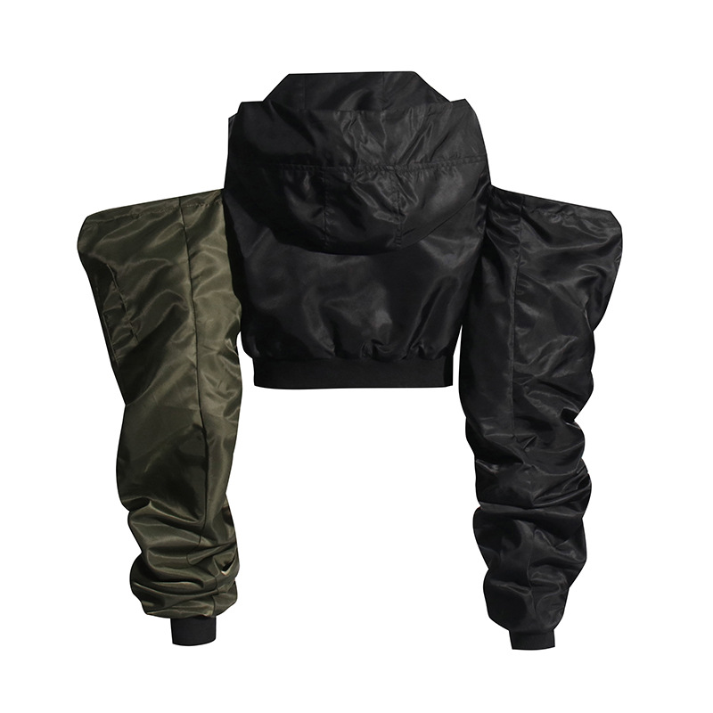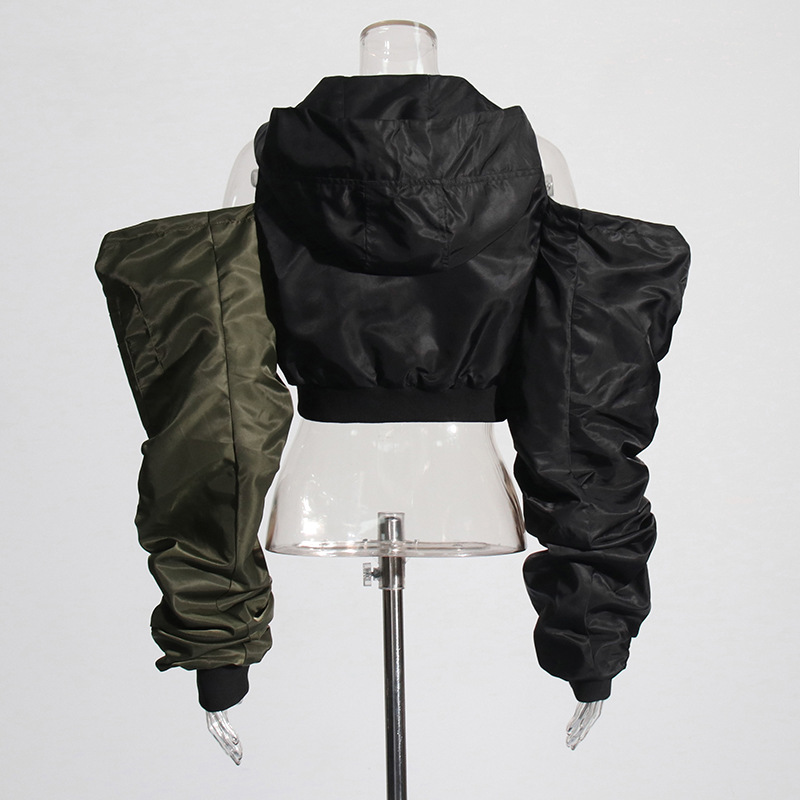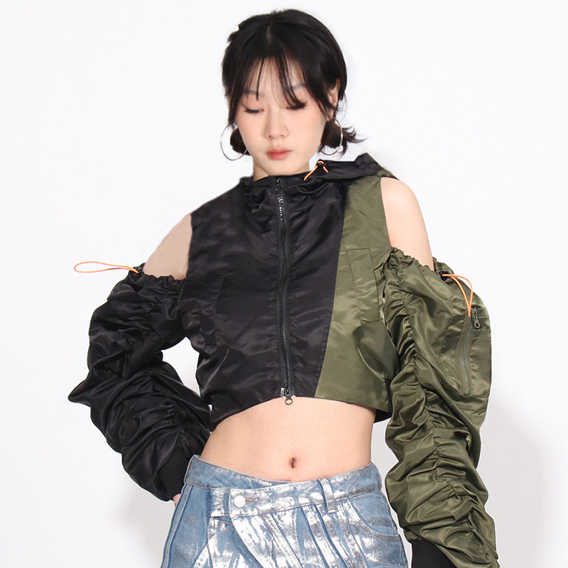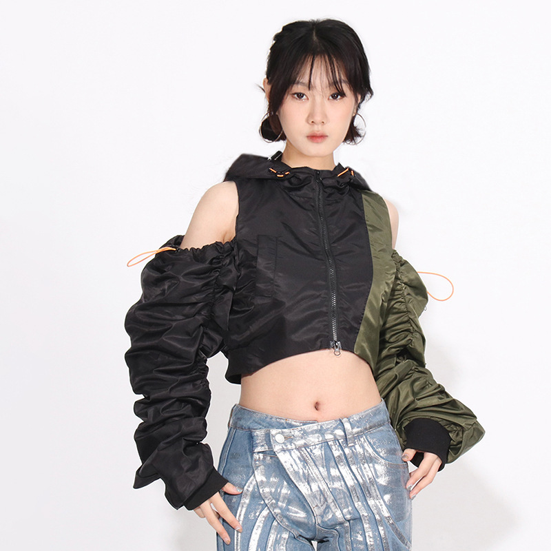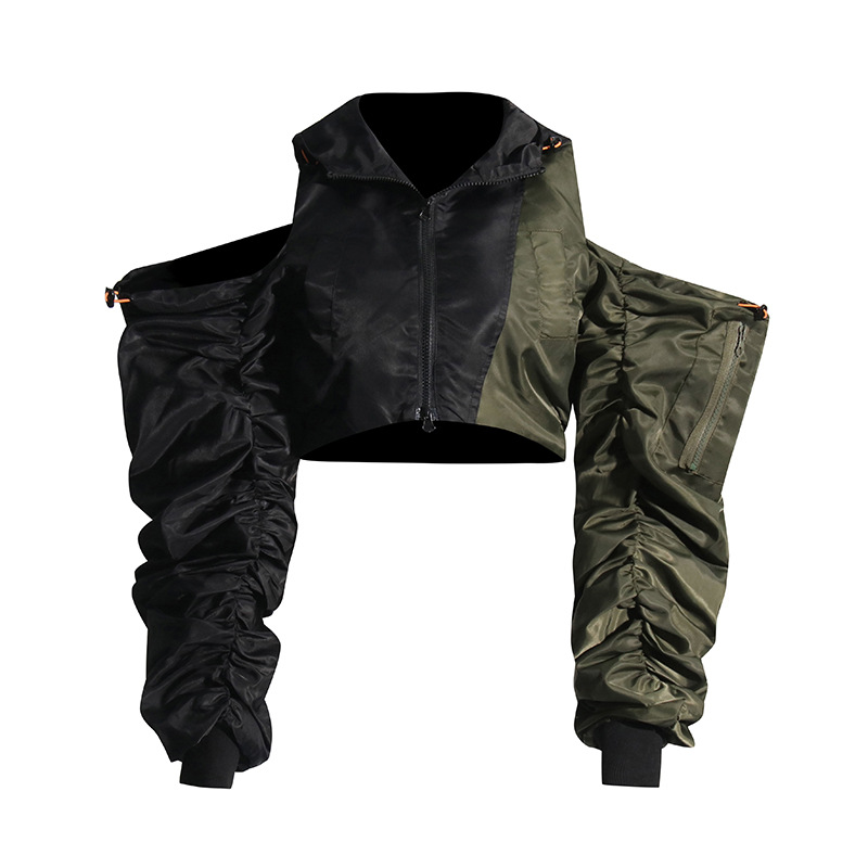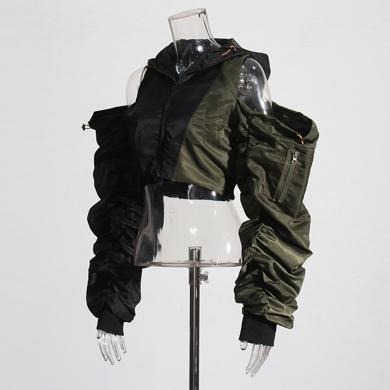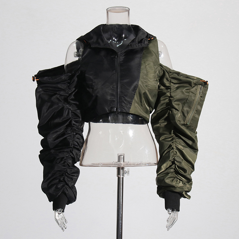 Fashion Pleating Off-the-shoulder Design Color Matching Short Top Coat