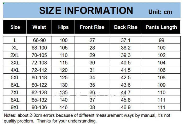 L, XL, 2XL, 3XL, 4XL, 5XL, 6XL, 7XL, 8XL, 9XL