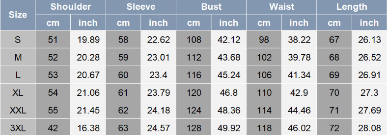 1. Asian sizes are 1 to 2 sizes smaller than European and American people. Choose the larger size if your size between two sizes. Please allow 2-3cm differences due to manual measurement.