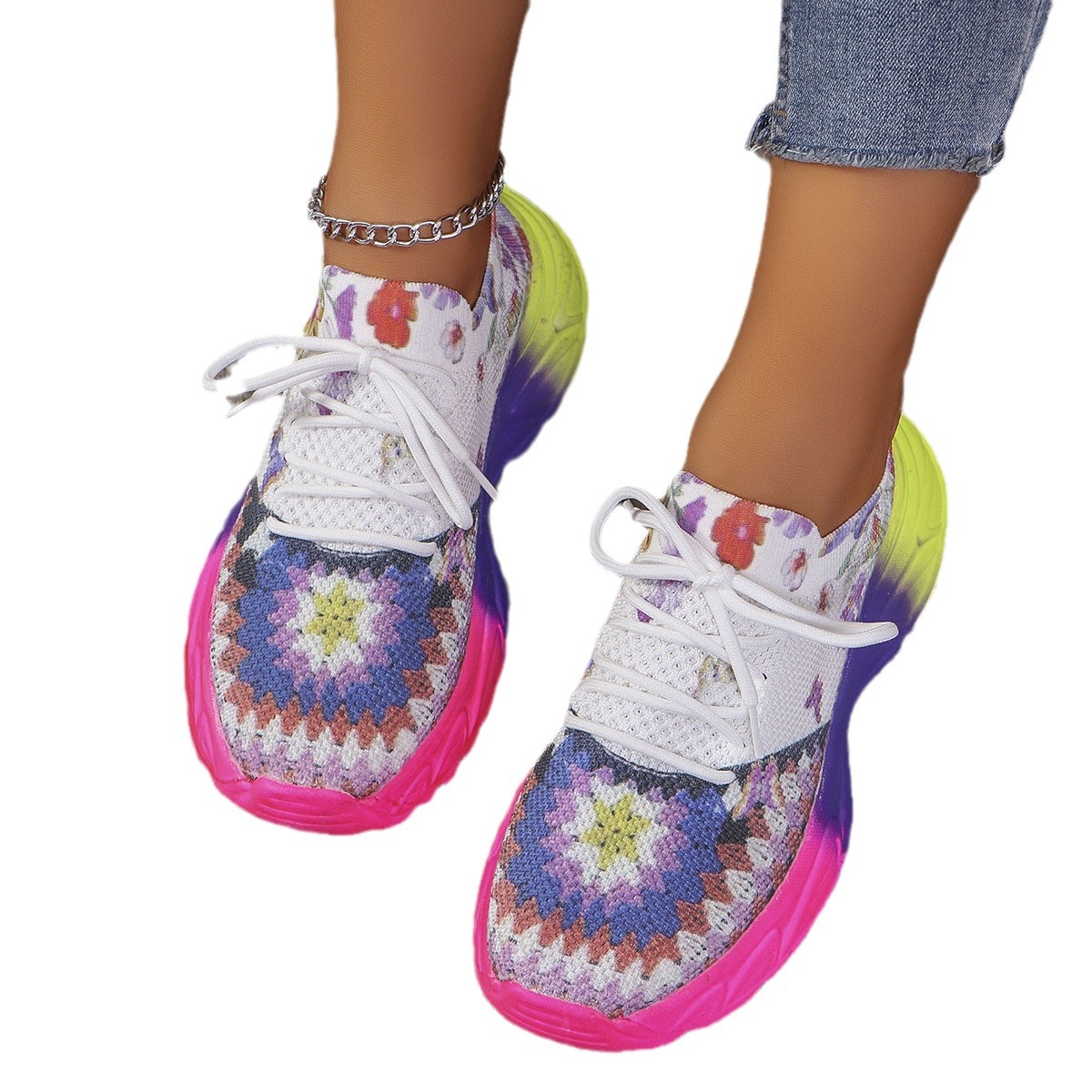 Fashion Printed Flat Sports Shoes Front Lace-up Plus Size