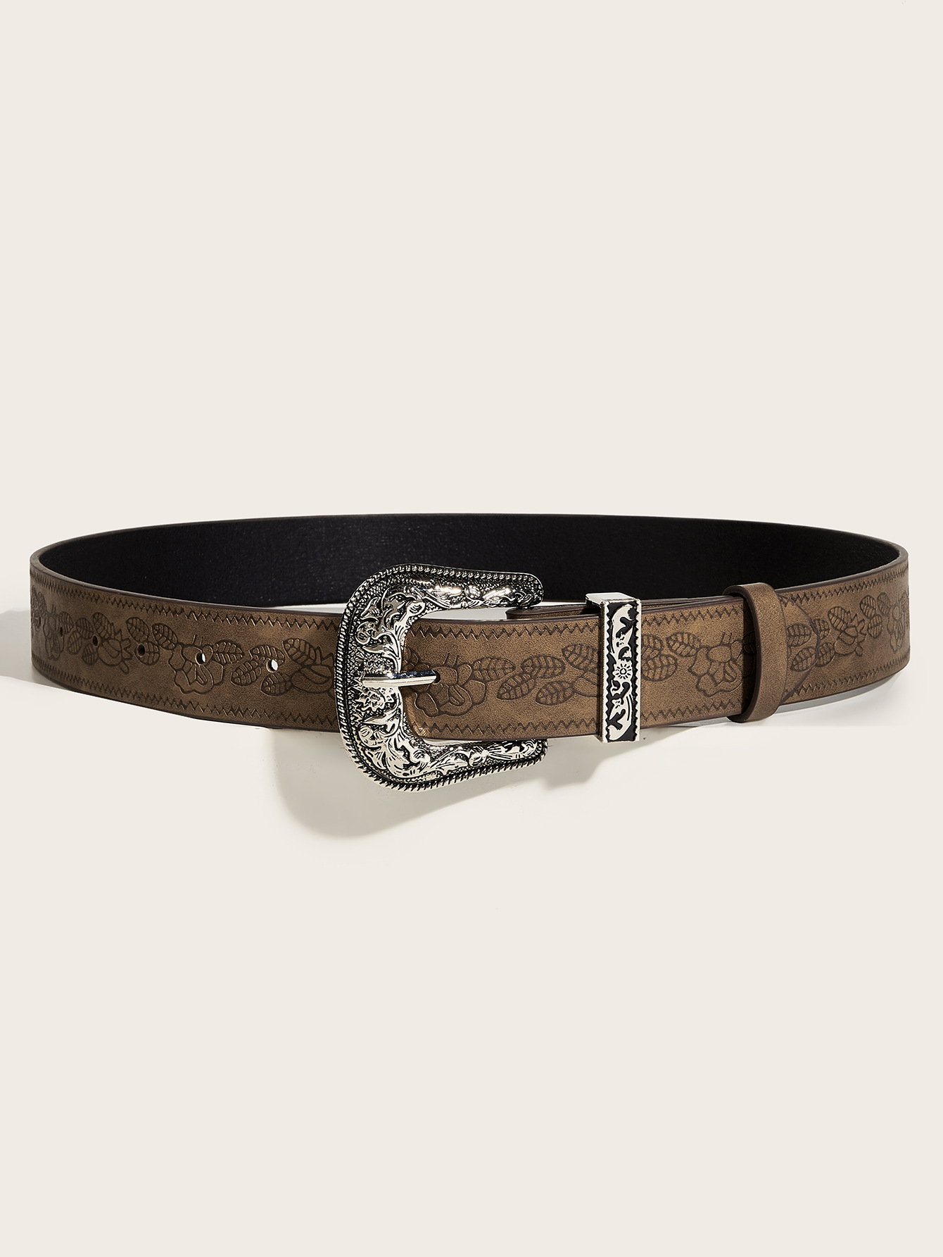 Color: 3.5 carved buckle pressure change edge herringbone line small flower brown belt