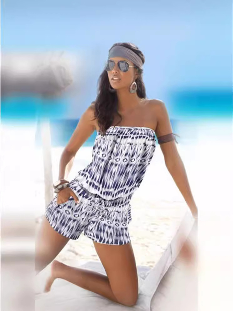 Fashion Printed Tube Top Off-shoulder Printed Jumpsuit