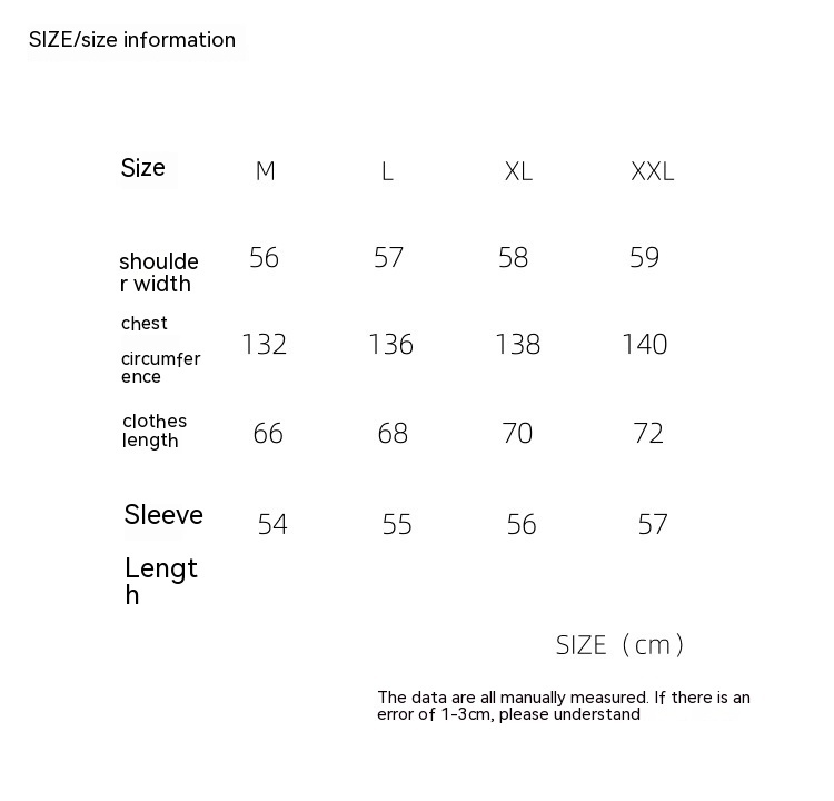 1. Asian sizes are 1 to 2 sizes smaller than European and American people. Choose the larger size if your size between two sizes. Please allow 2-3cm differences due to manual measurement. 2. Please check the size chart carefully before you buy the item, if you don't know how to choose size, please contact our customer service. 3.As you know, the different computers display colors differently, the color of the actual item may vary slightly from the following images.