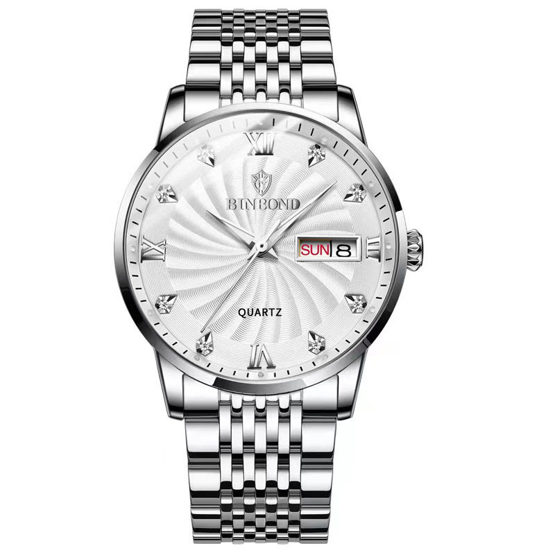 Fashion Quartz Watch Steel Belt Double Calendar Men's Watch Waterproof