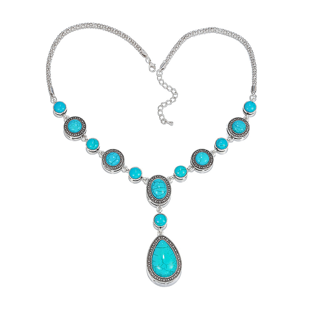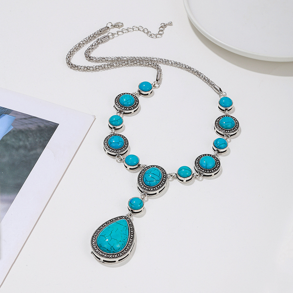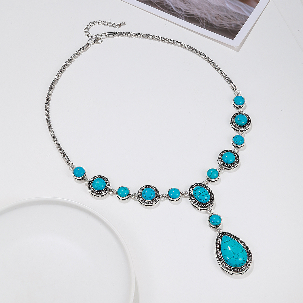 Color: Alloy blue turquoise drop-shaped necklace