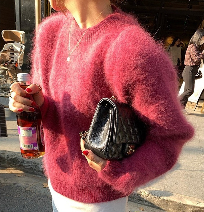 Fashion Retro Loose And Warm Solid Color Pullover Sweater Women
