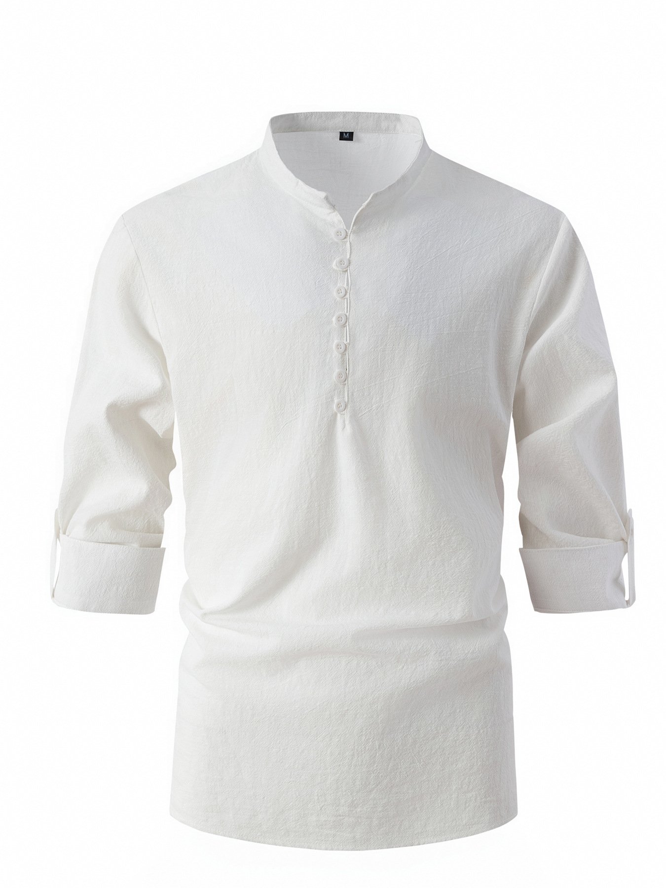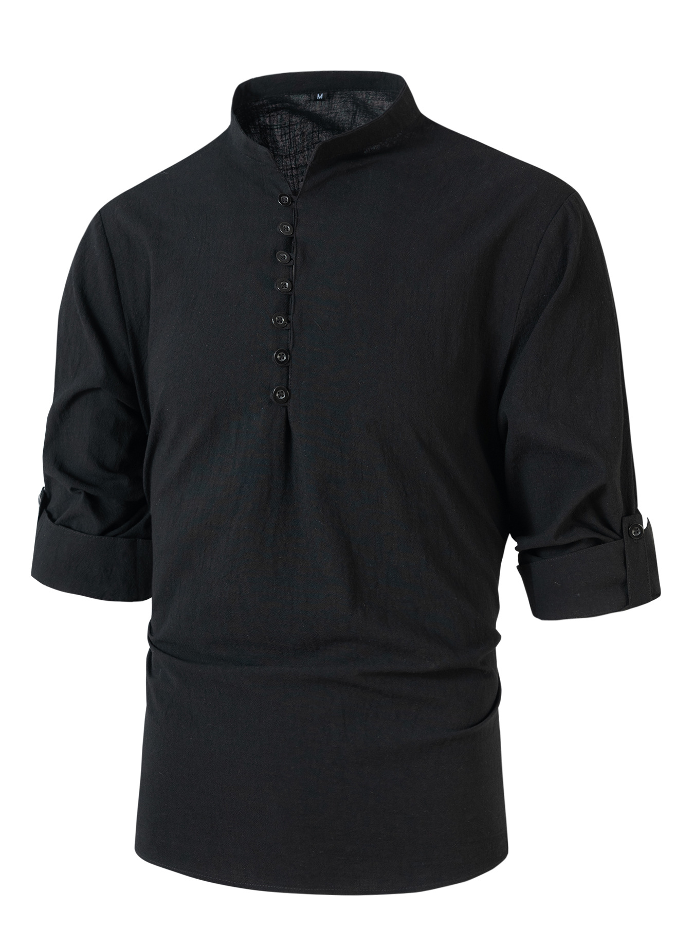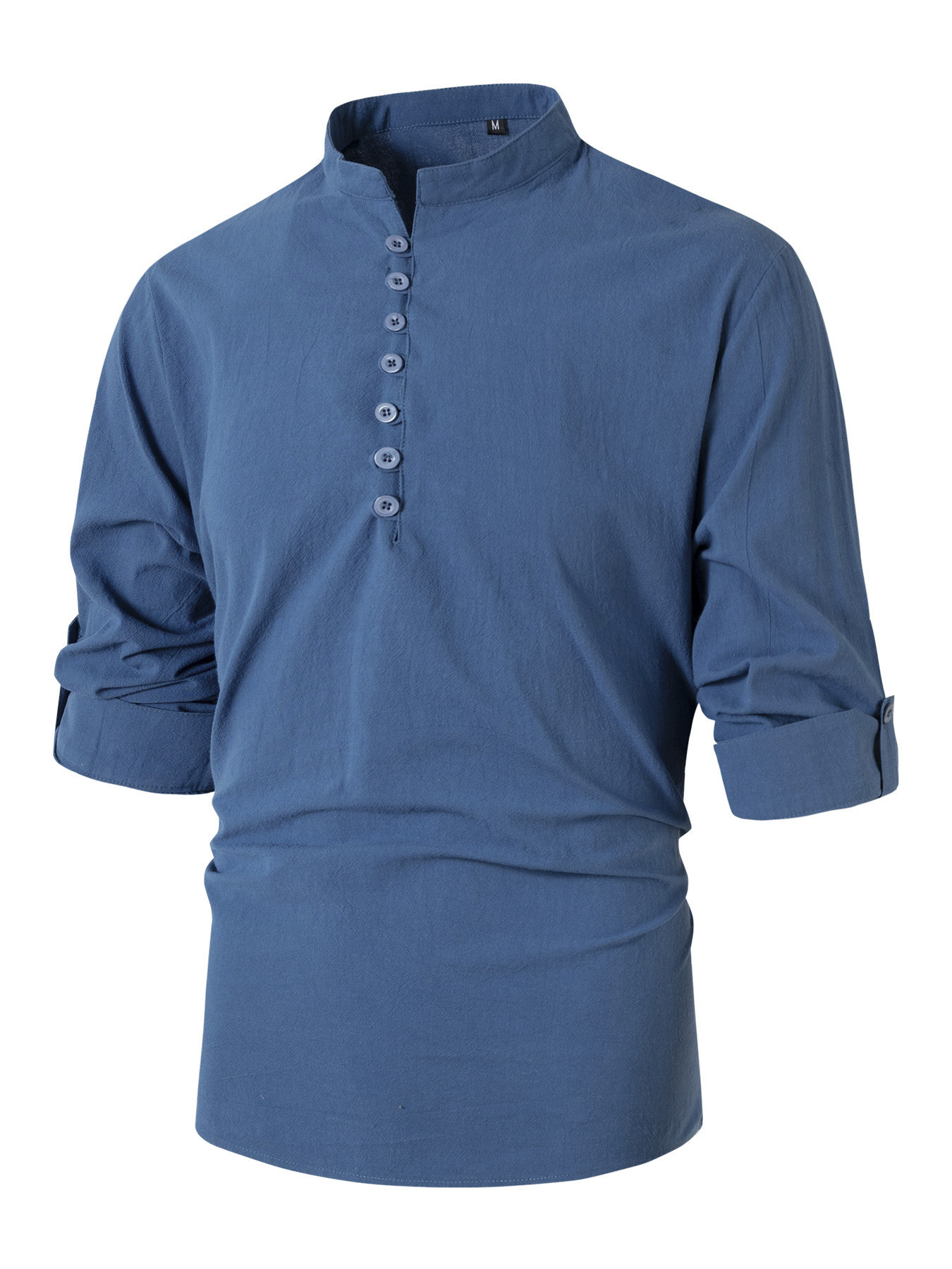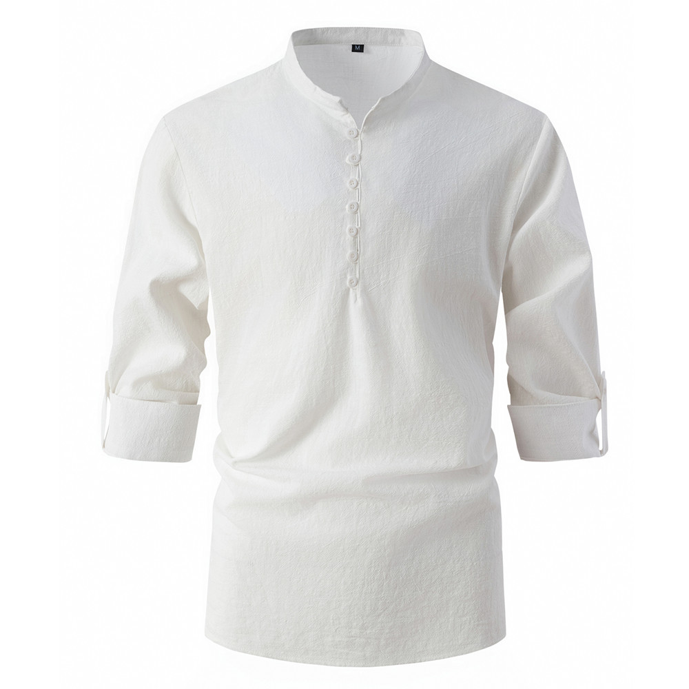 Fashion Retro Men's Spring And Autumn Cotton And Linen Stand Collar Business Slim Casual Shirt