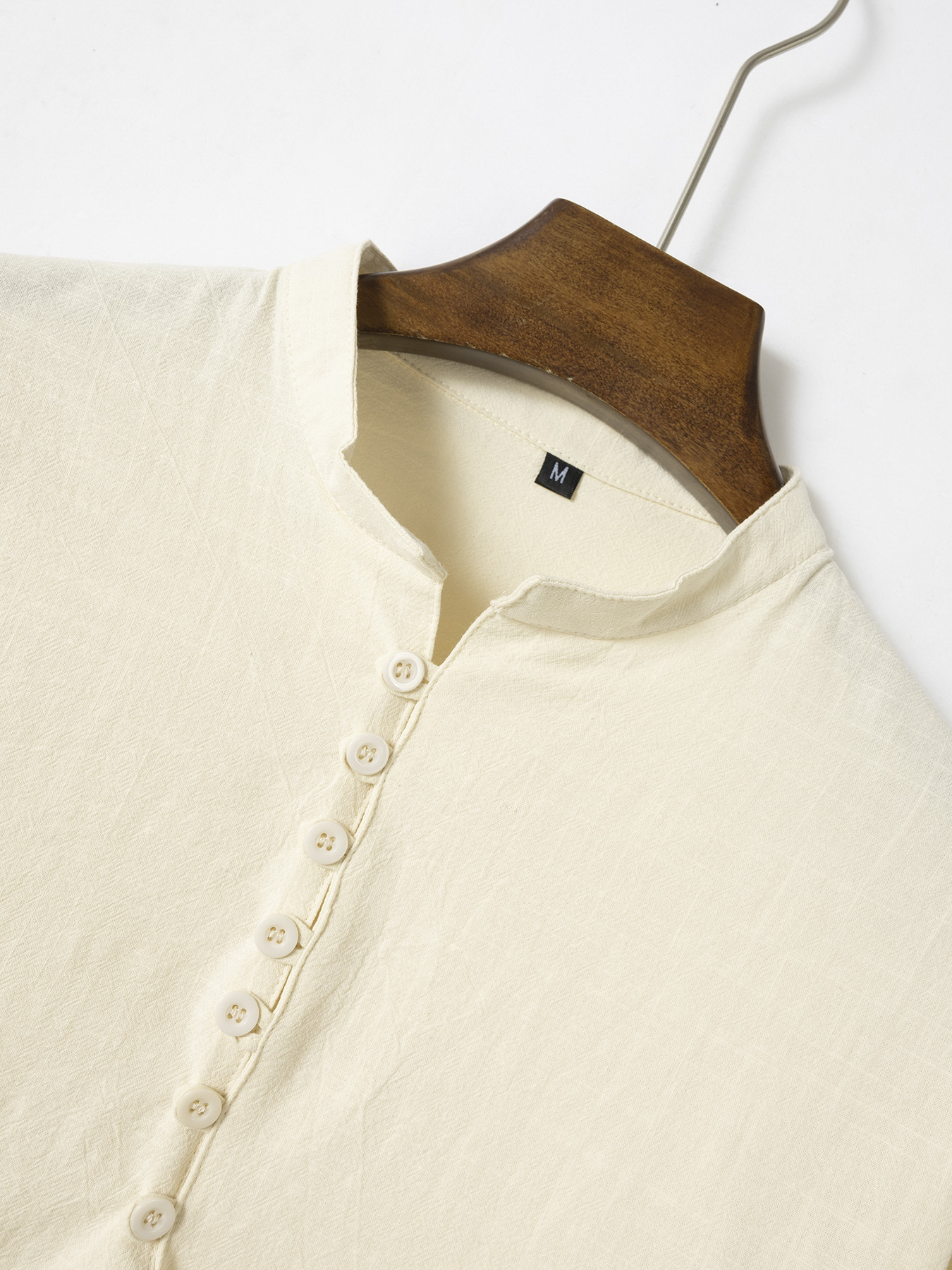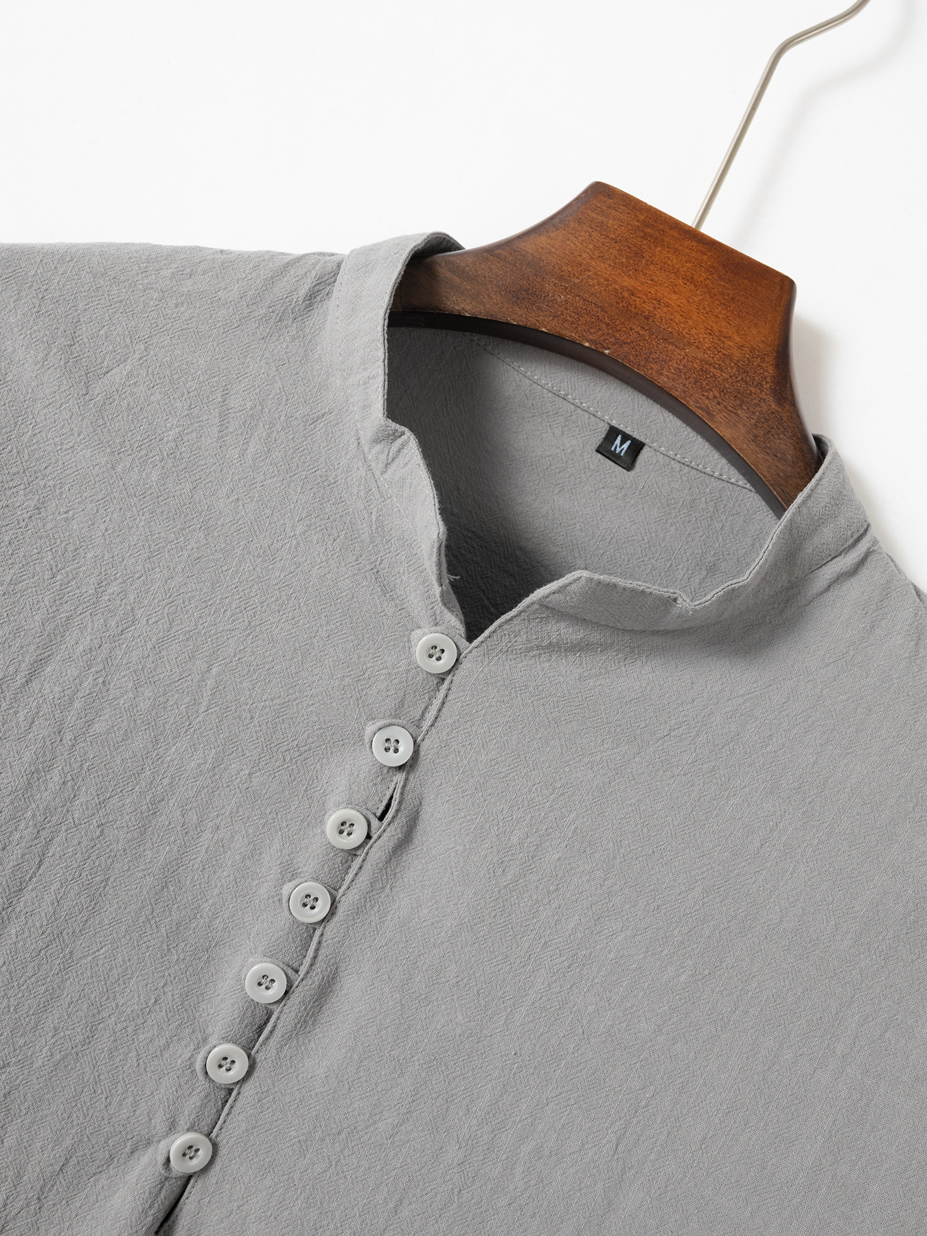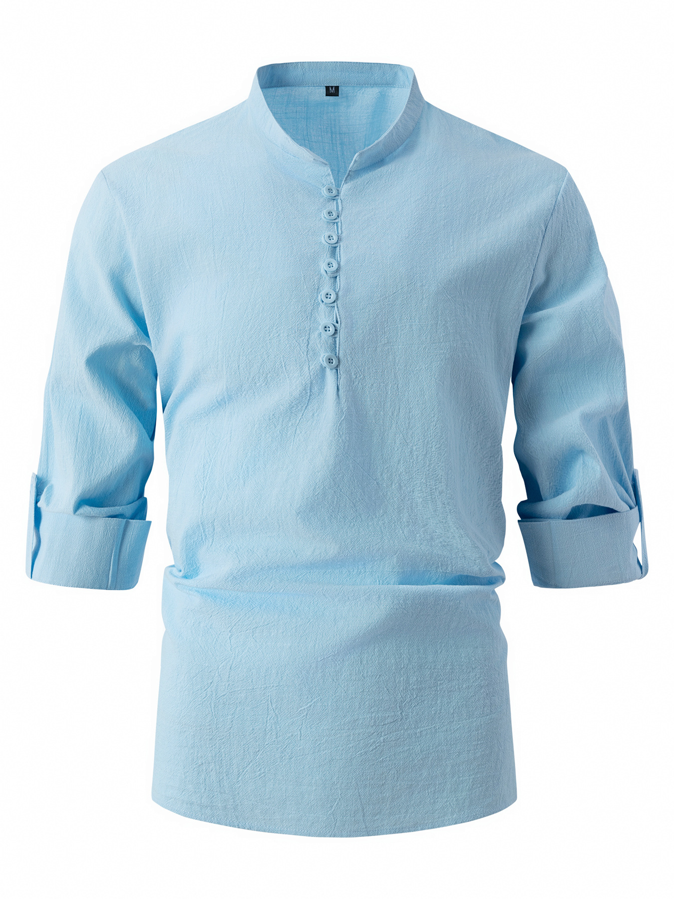 Fashion Retro Men's Spring And Autumn Cotton And Linen Stand Collar Business Slim Casual Shirt