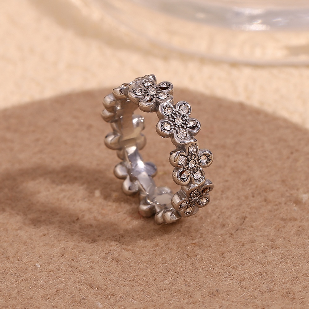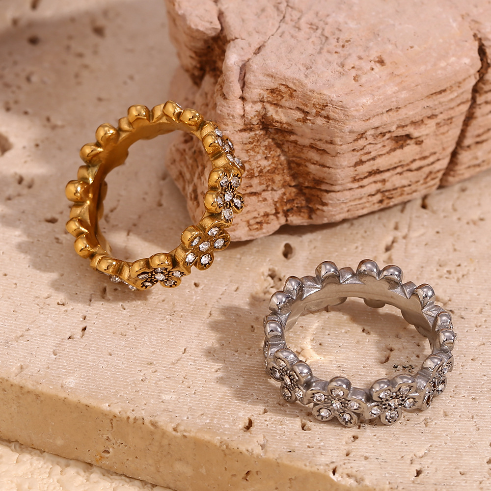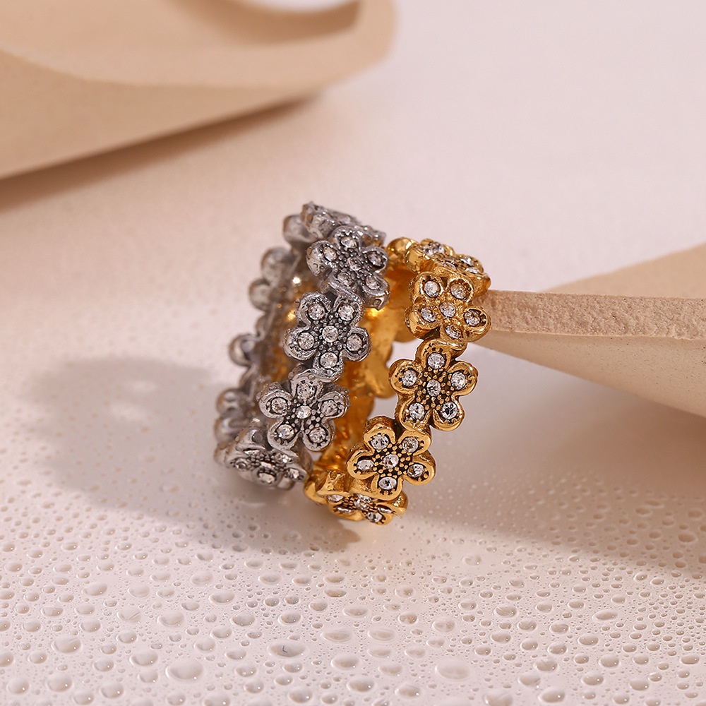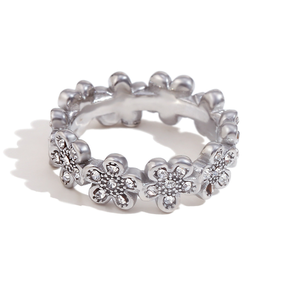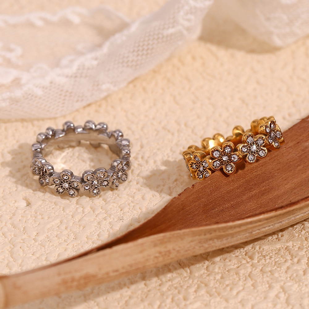 Color: Flower Full diamond micro inlaid little Daisy ring-gold, flower full diamond micro inlaid little Daisy ring-steel color