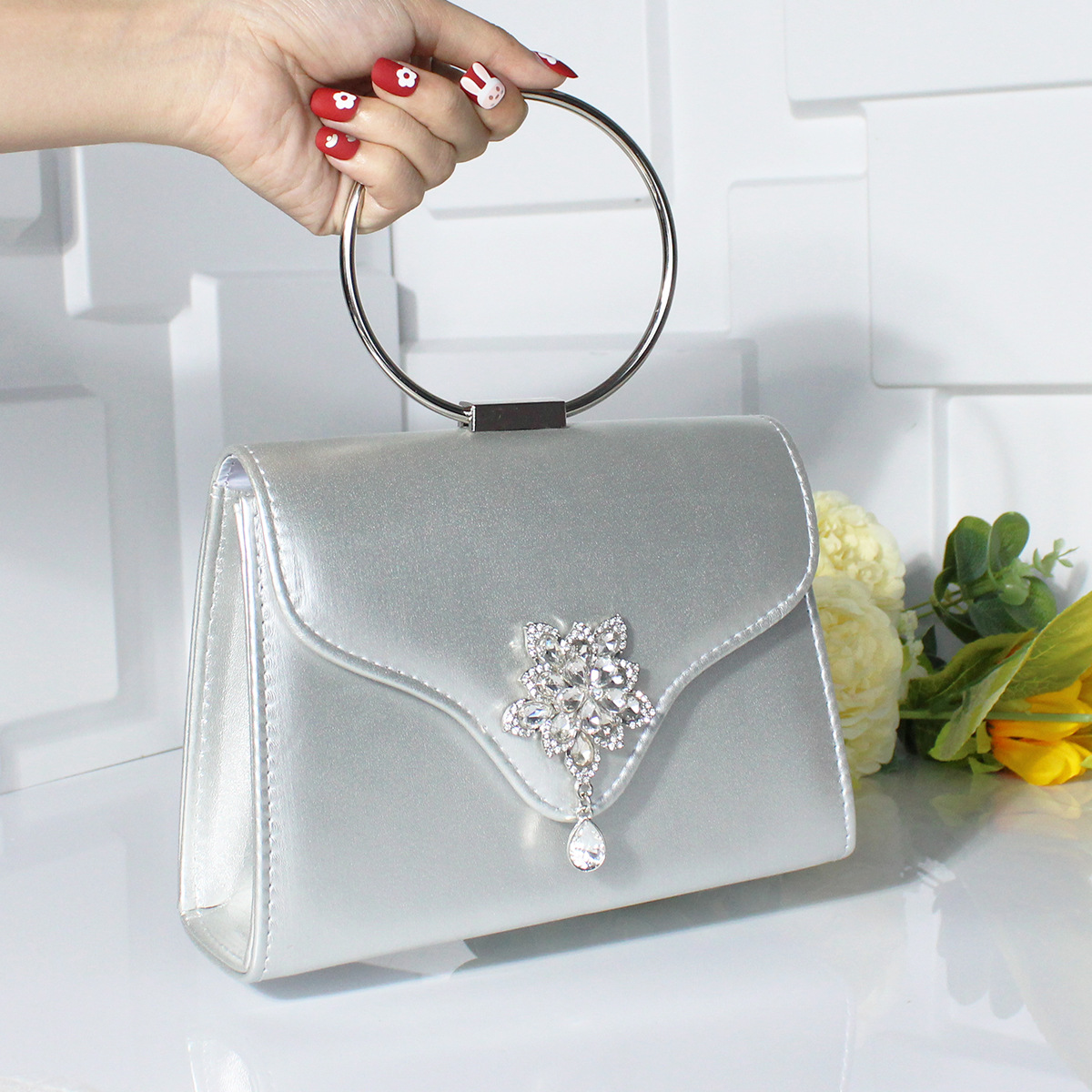 Fashion Rhinestone Small Flower Dinner Bag Handbag
