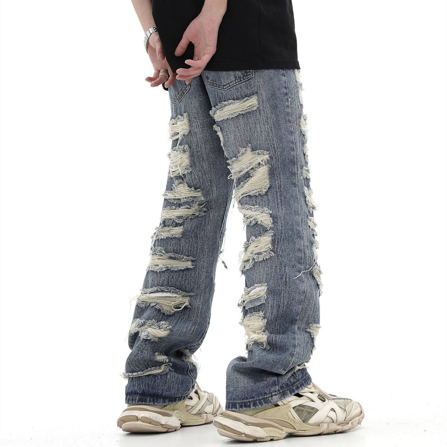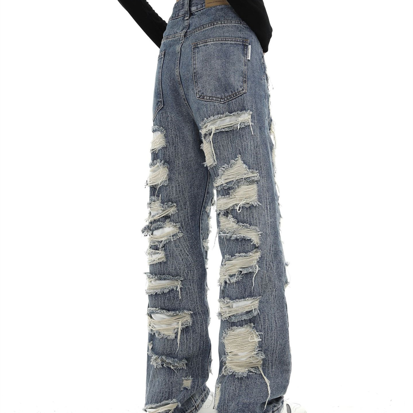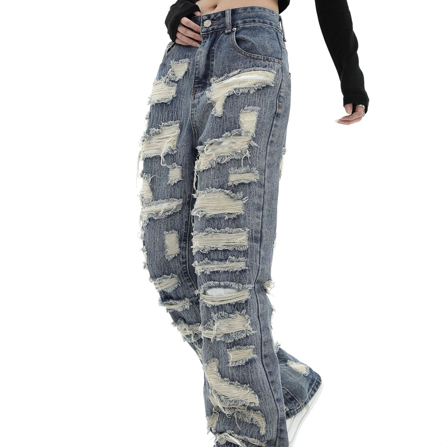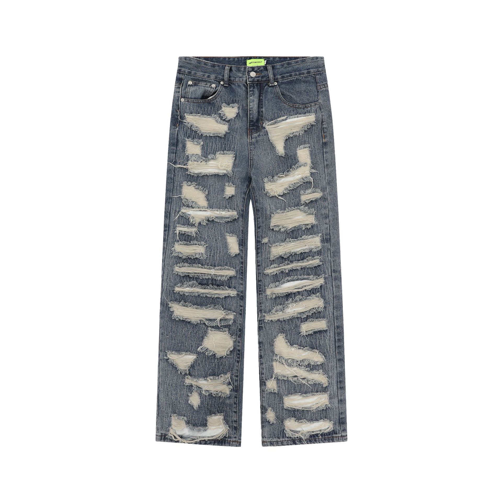 Fashion Ripped Straight Denim Trousers