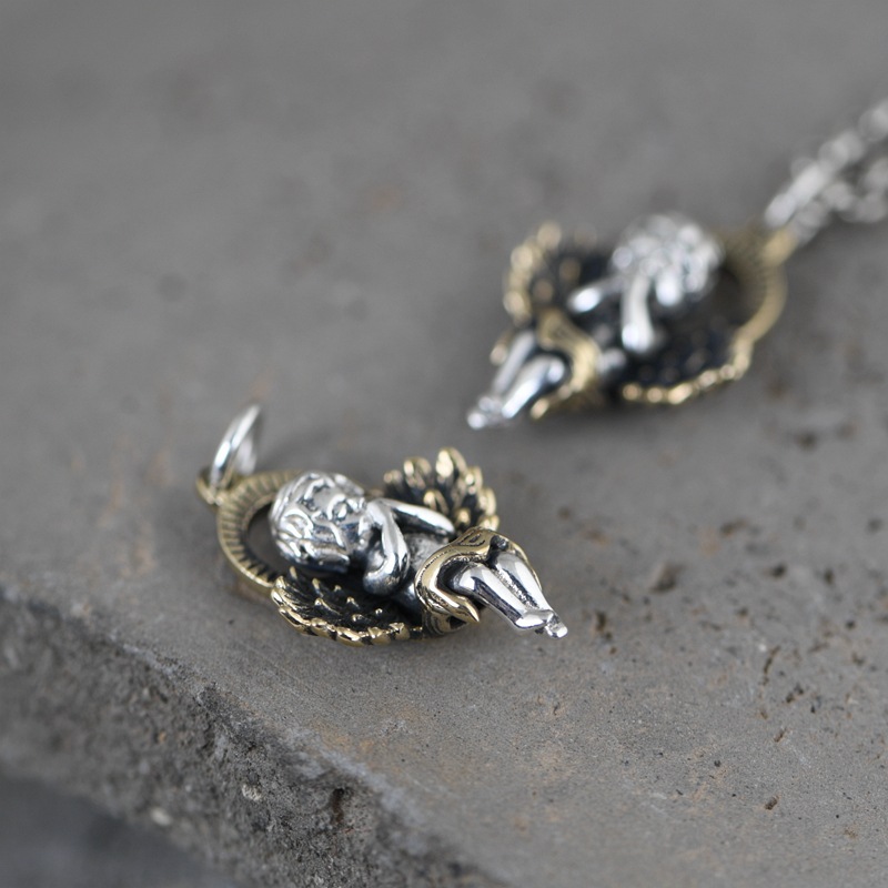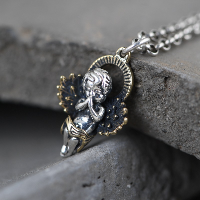 Fashion S925 Silver Vintage Silver Angel Pendant