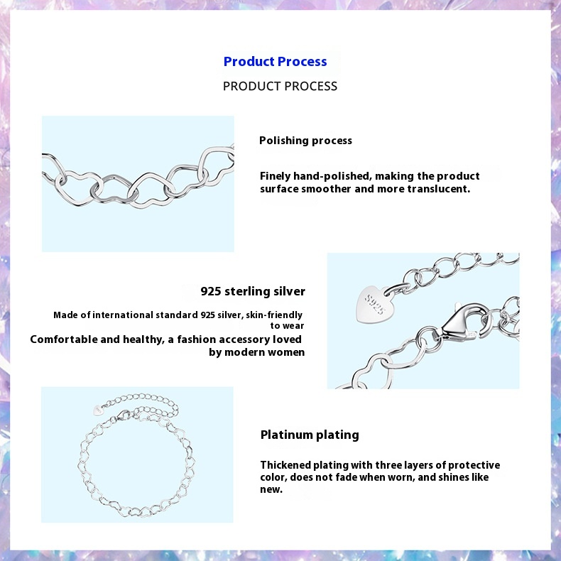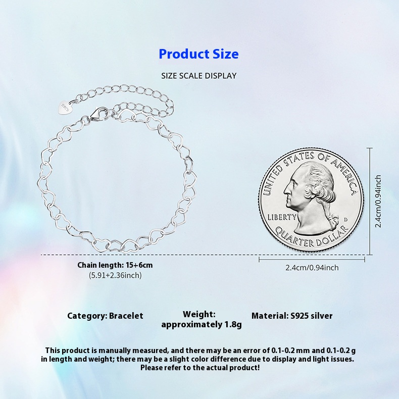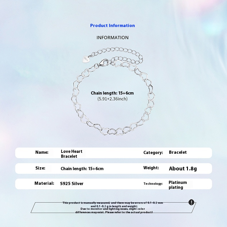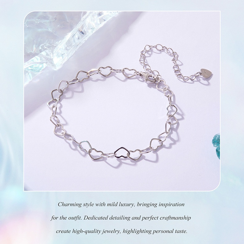 Fashion S925 Sterling Silver Simple Heart-shaped Multi-part Bracelet