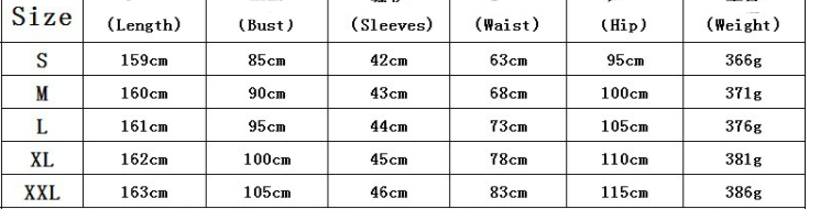 Size: S, M, L, XL, XXL unit: cm