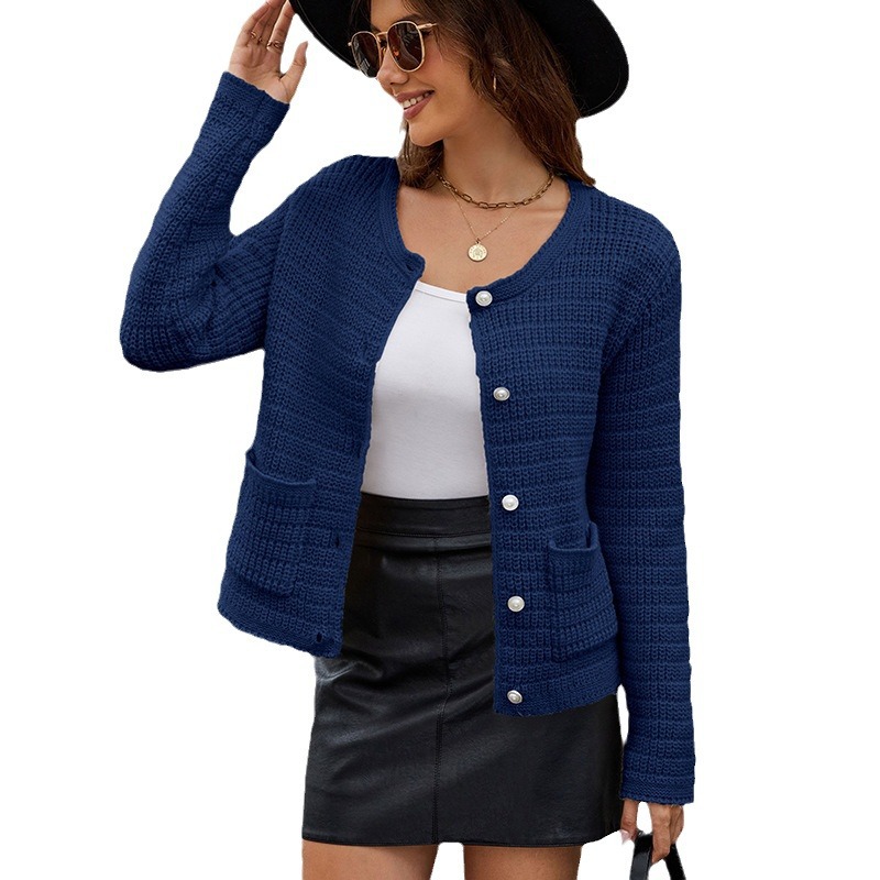 Fashion Short Coat Women's Knitted Cardigan Round Neck