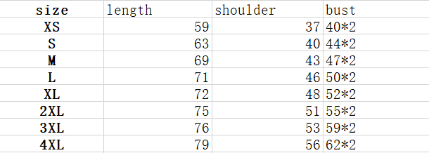 Size: XS, S, M, L, XL, 2XL, 3XL, 4XL
