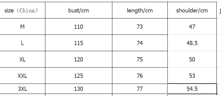 Size : M, L, XL, XXL, XXXL, XXXXL