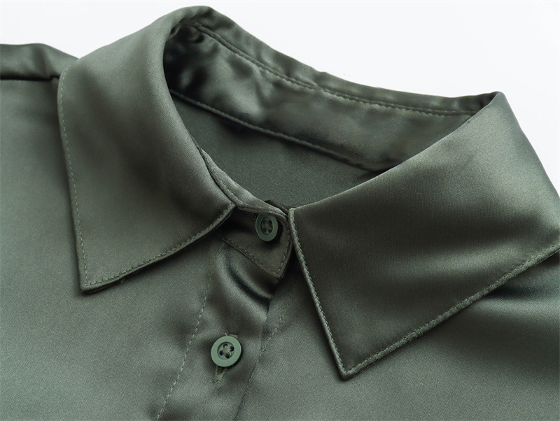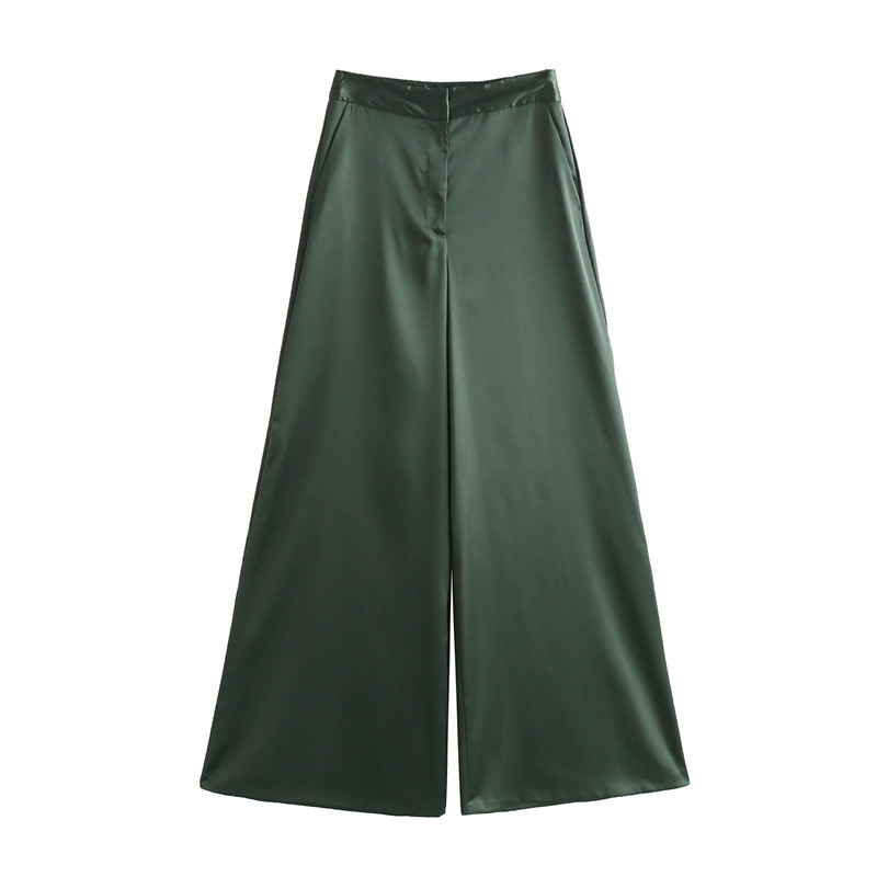 Fashion Silk Satin Textured Shirt Wide Leg Pants