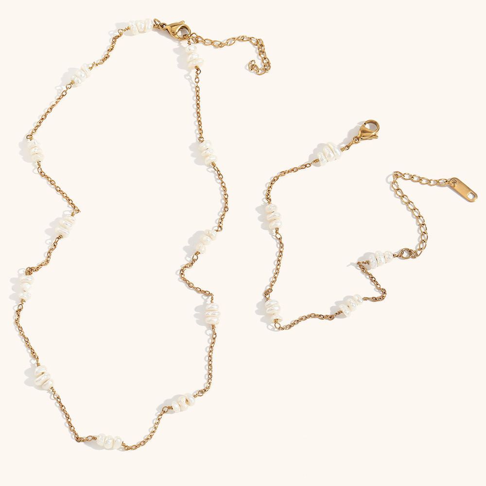 Color: Freshwater Pearl handmade chain bracelet, freshwater pearl handmade chain necklace