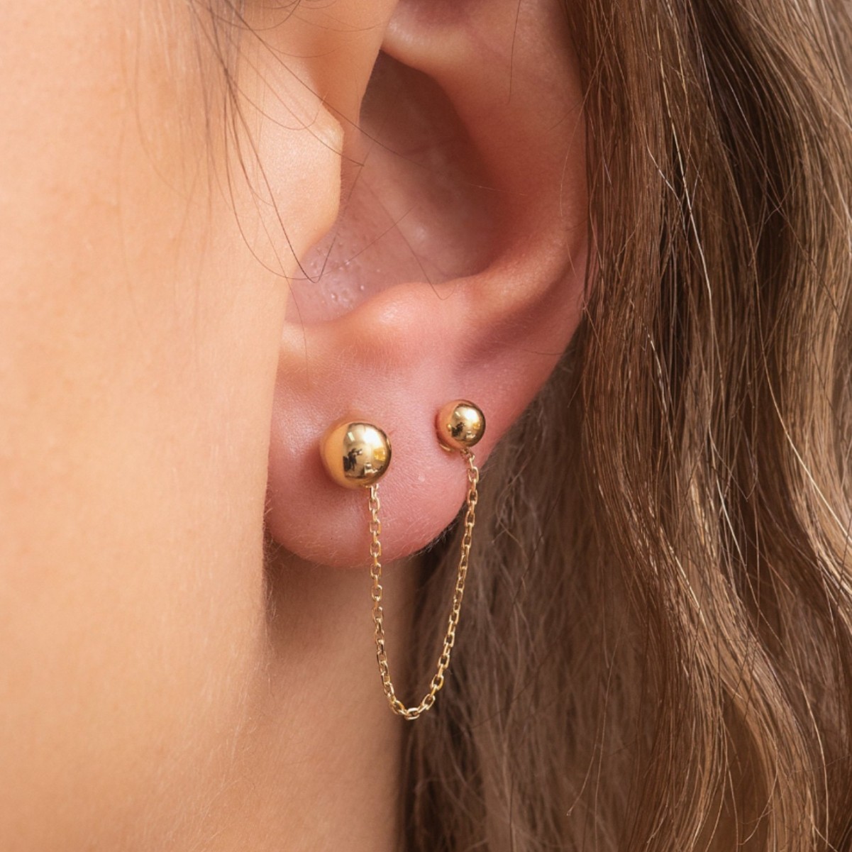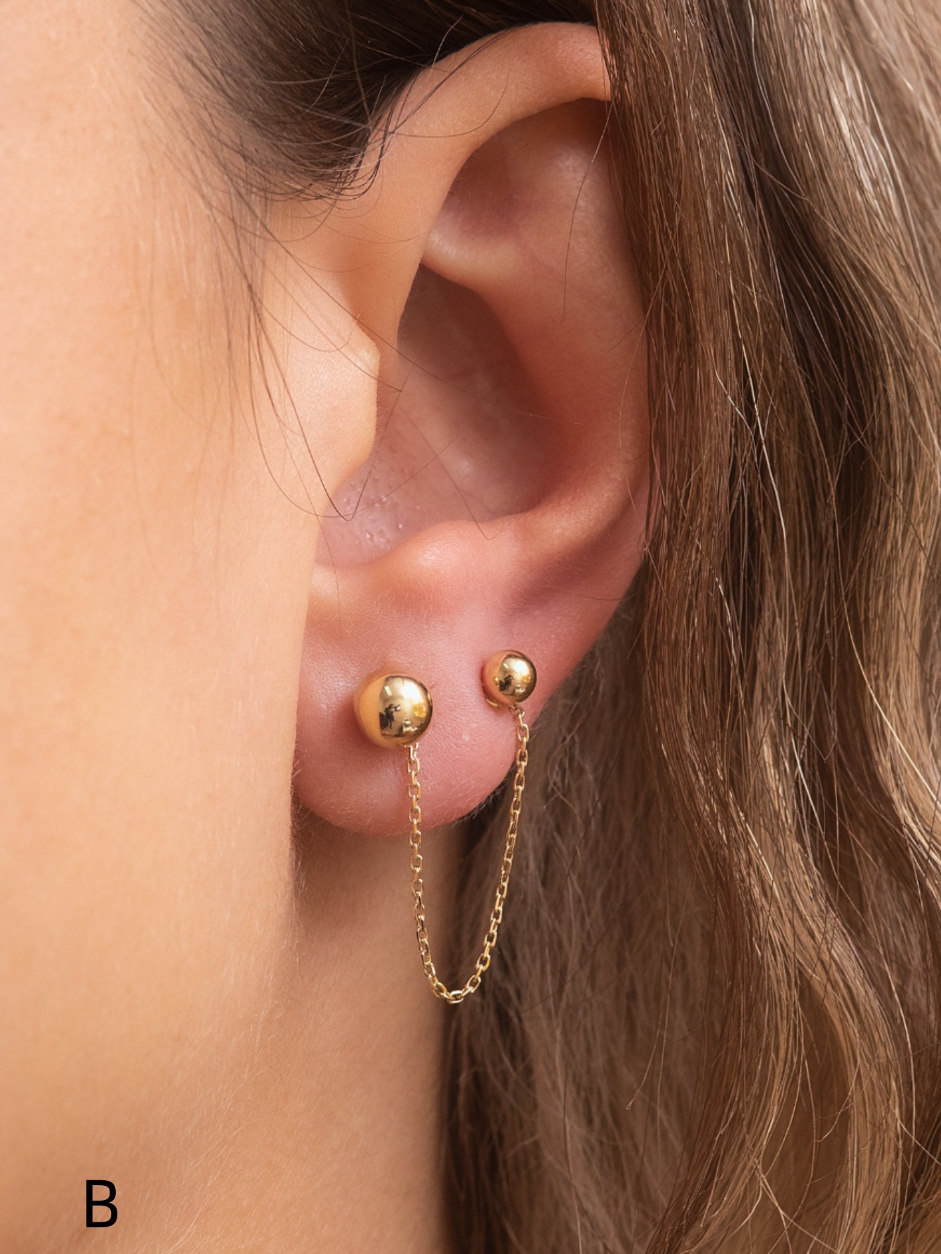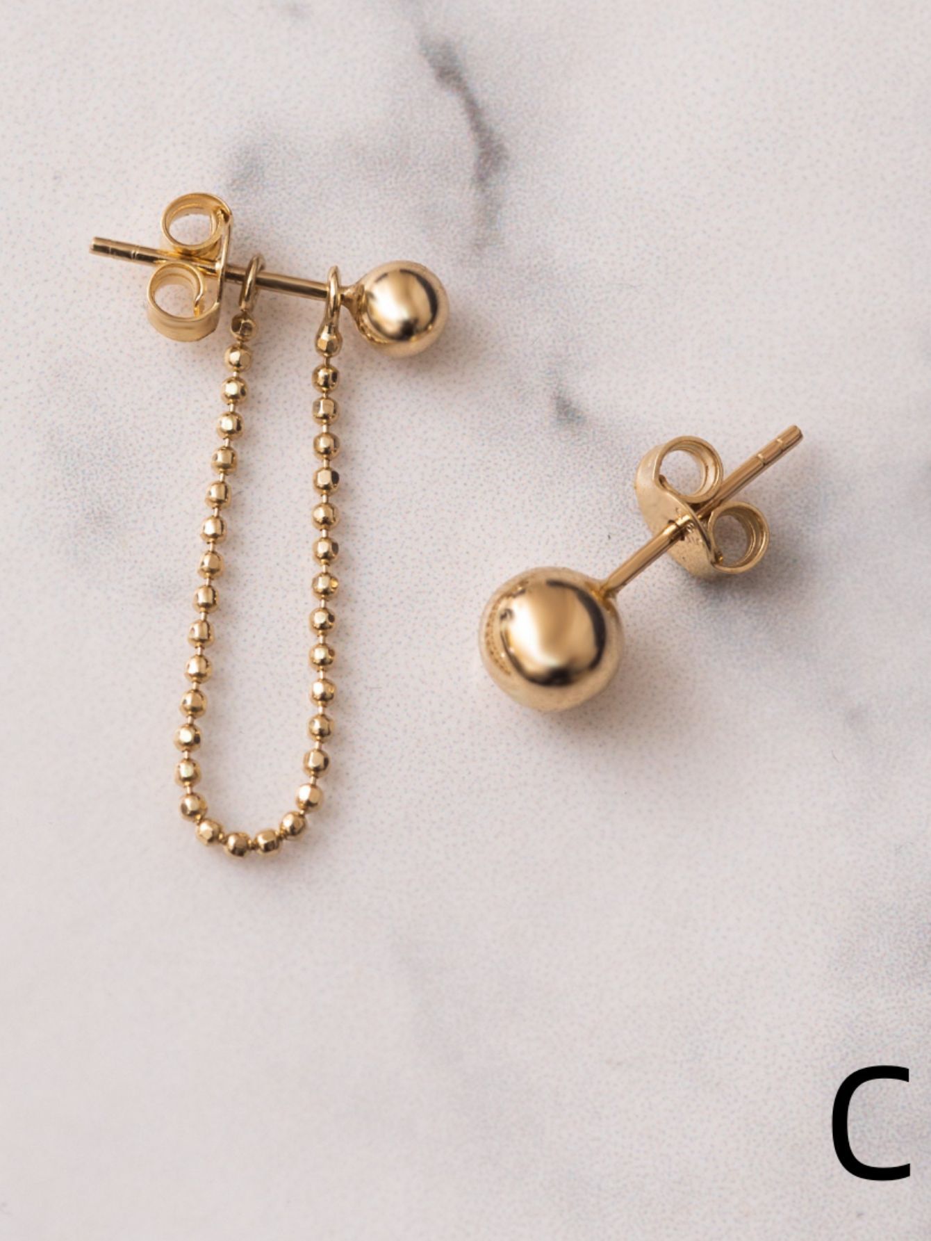 Fashion Simple Ball Hanging Earrings Three Different Chains All-match Eardrops