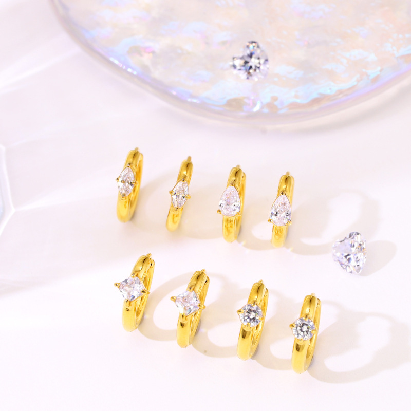 Color: 14K gold love white zirconium, 14K gold round white zirconium, 14K gold water drop White zirconium, 14K Golden Horse eyes white zirconium, 14K gold princess square white Zirconium