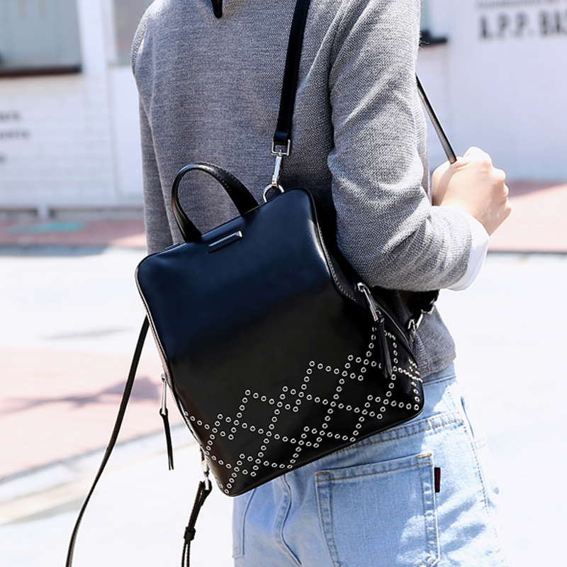Fashion Simple Leisure Anti-theft Top Leather Rivet Bag