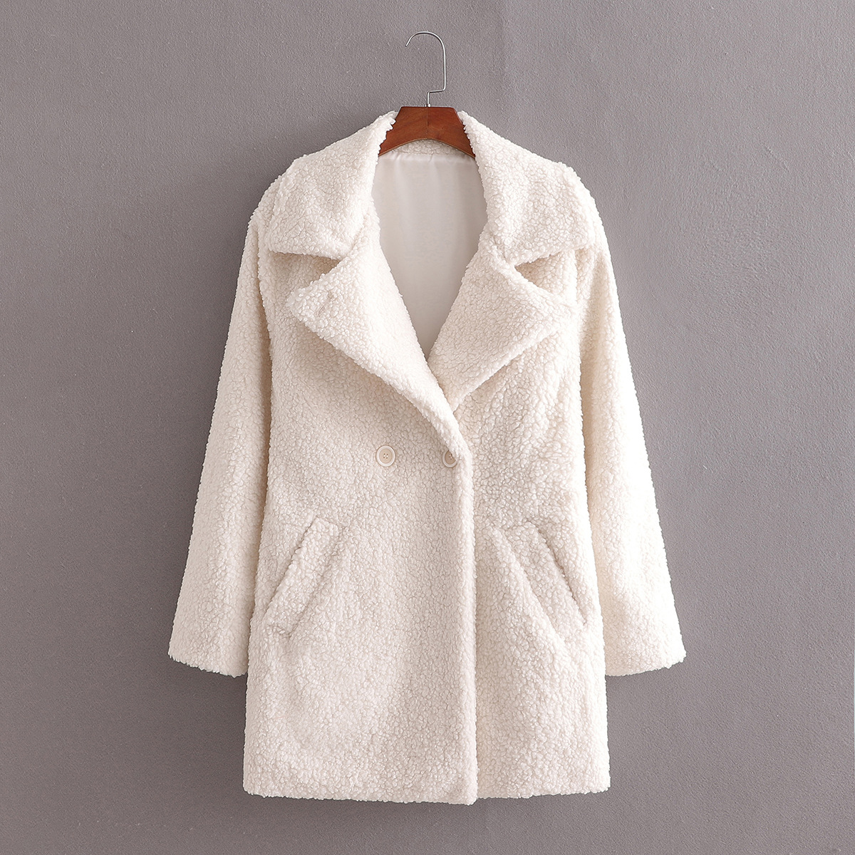 Fashion Simple Pure Color Women's Lapel Wool Coat
