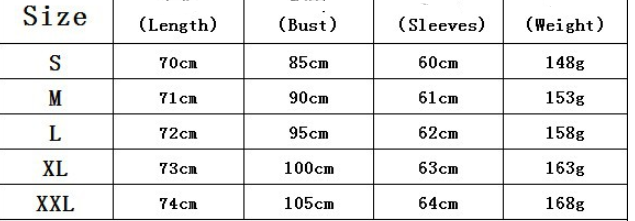 Size: S, M, L, XL, XXL unit: cm