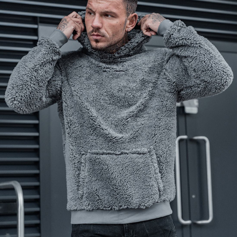 Fashion Solid Color Men's Long Sleeve Plush Hoodie