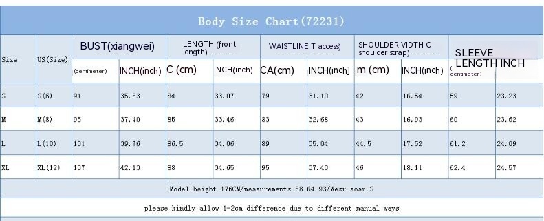 1. Asian sizes are 1 to 2 sizes smaller than European and American people. Choose the larger size if your size between two sizes. Please allow 2-3cm differences due to manual measurement. 2. Please check the size chart carefully before you buy the item, if you don't know how to choose size, please contact our customer service. 3.As you know, the different computers display colors differently, the color of the actual item may vary slightly from the following images.