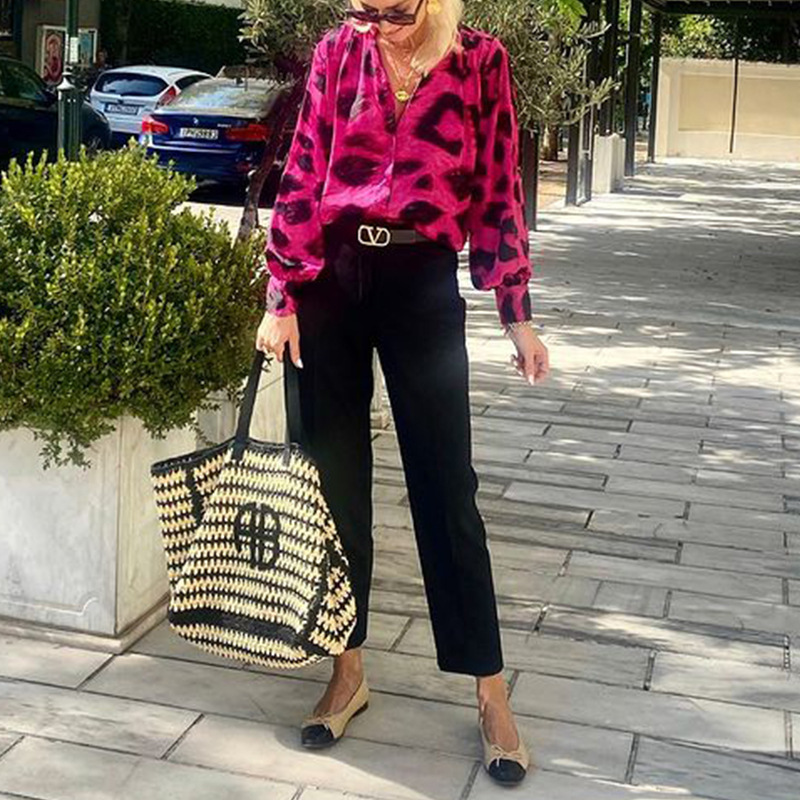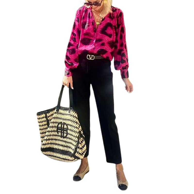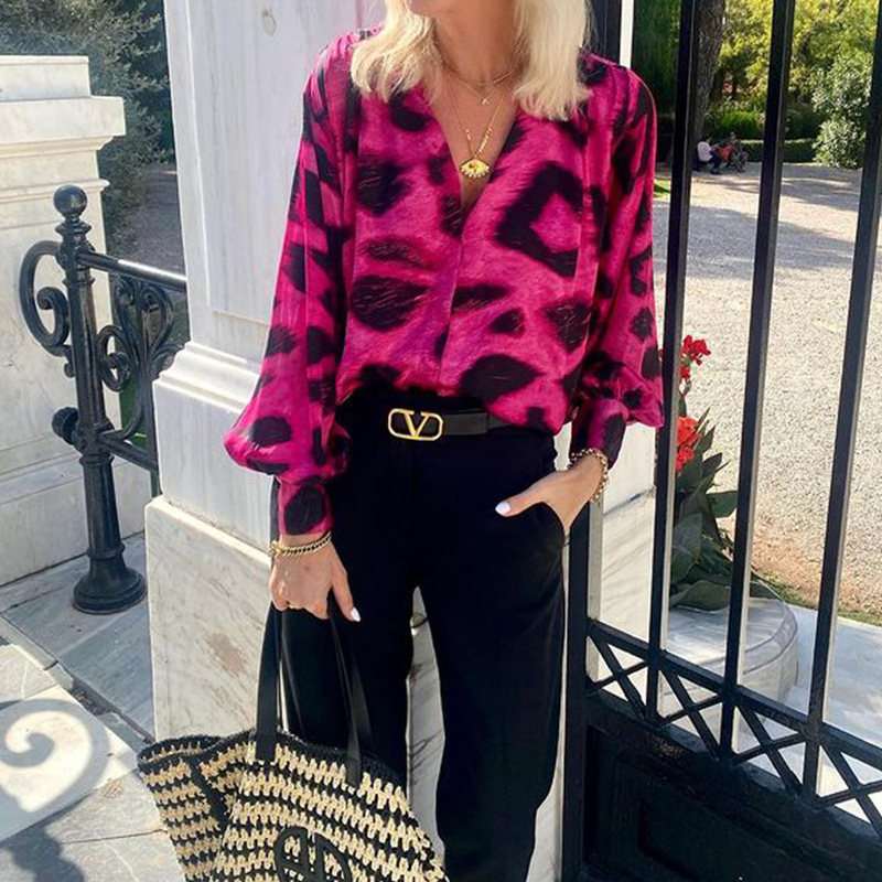 Fashion Special V-neck Long Sleeve Bohemian Leopard Top