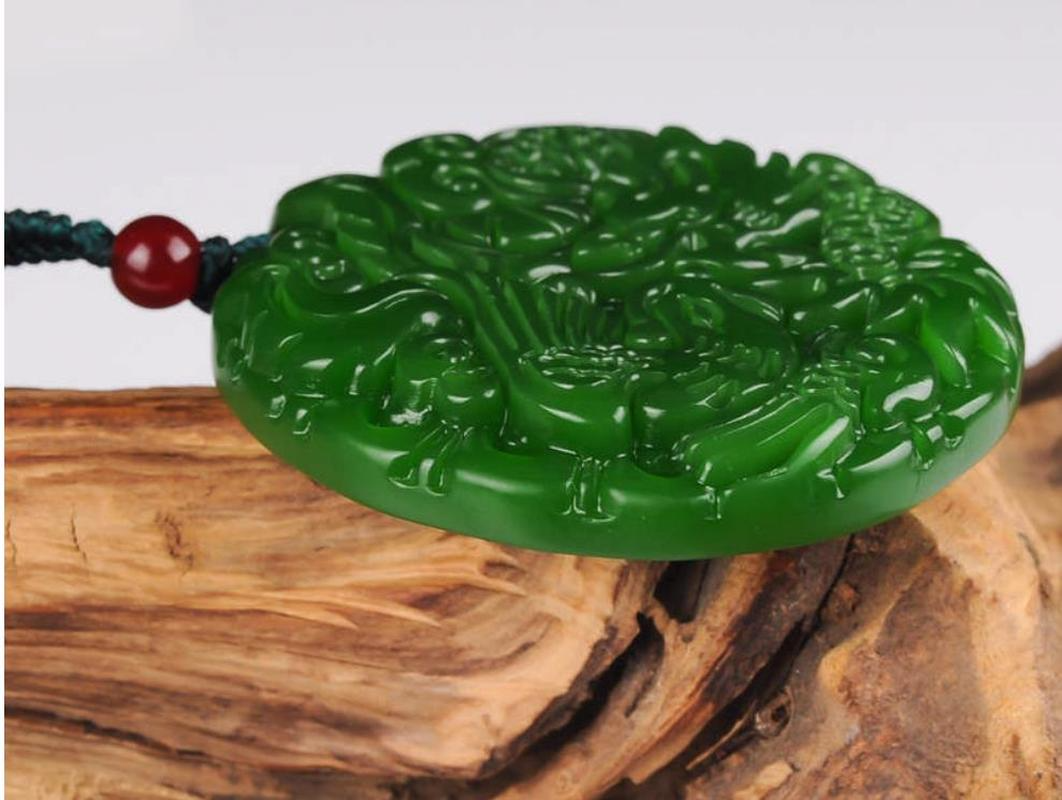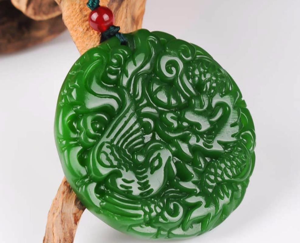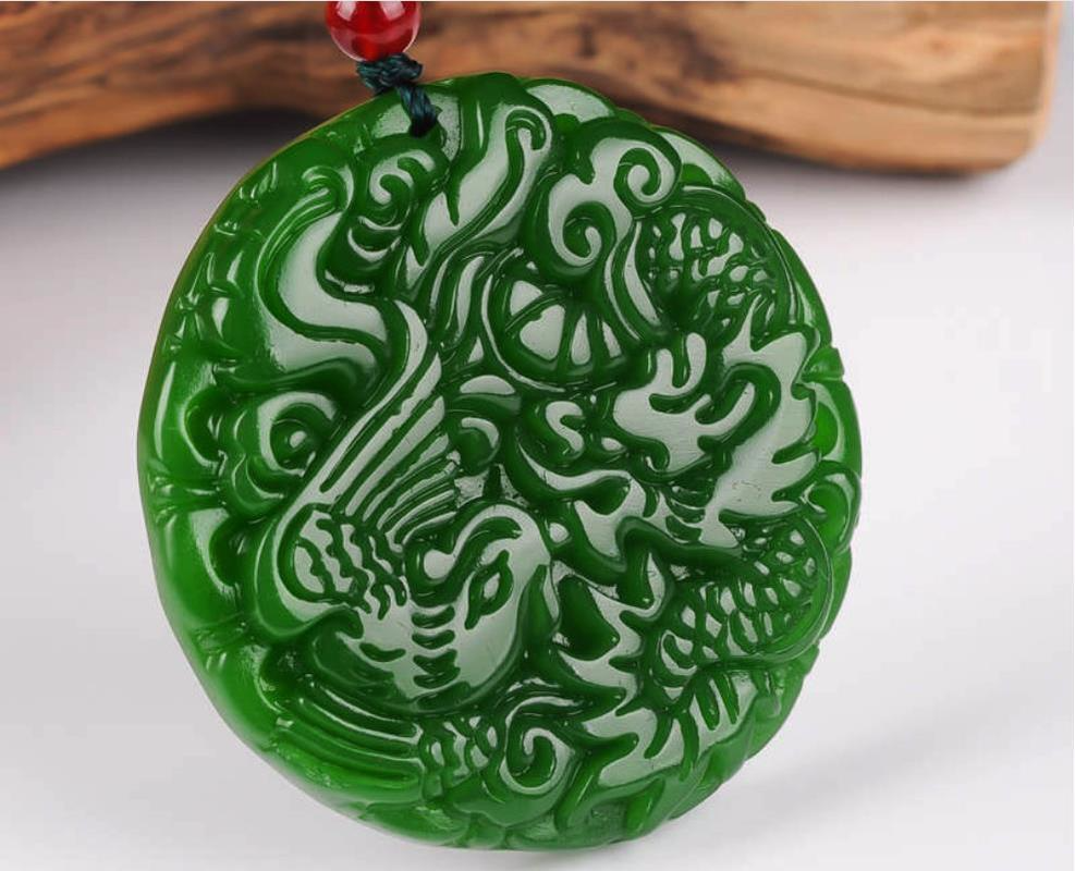Material: JasperProduction process: CarvingColor: greenStyle: 2#dragon and phoenix are auspicious