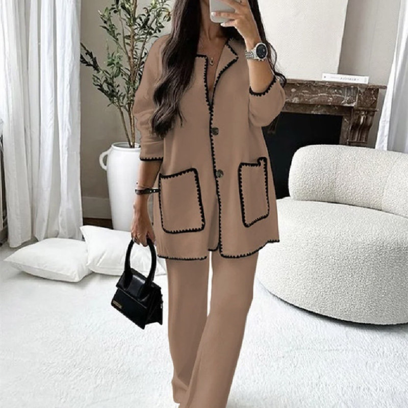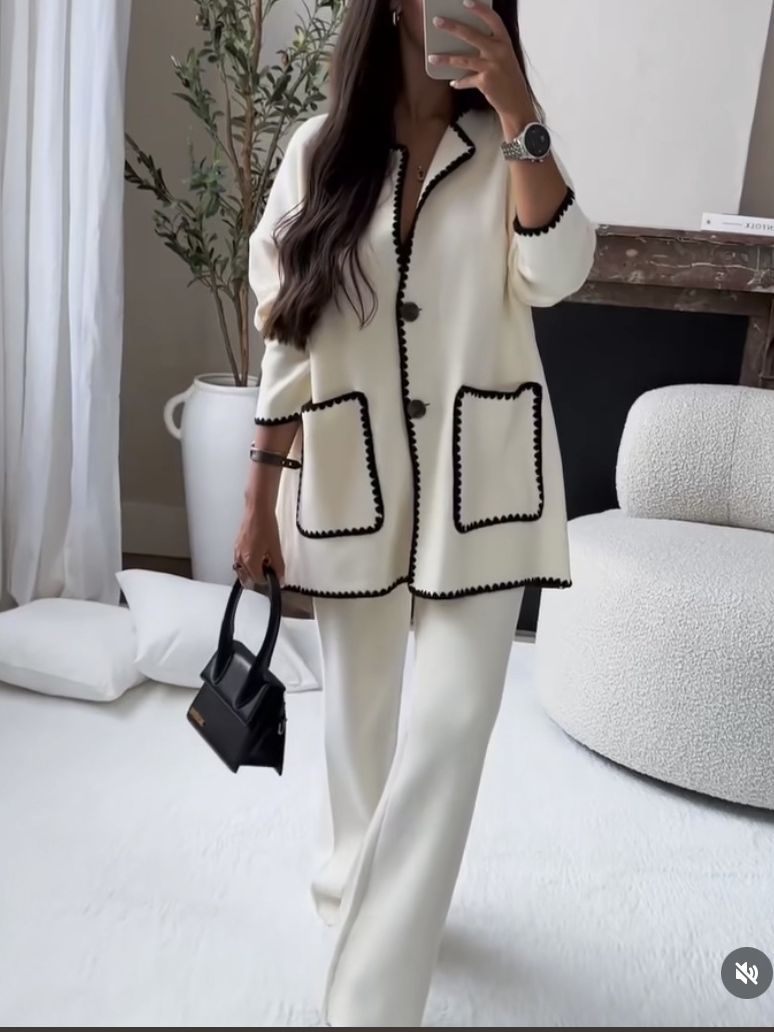 Color: white top, white pants, black top, black pants, white suit, black suit, Orange, camel