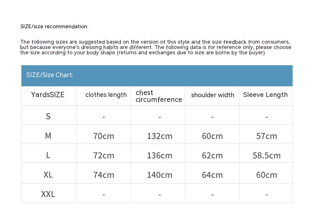 Note: 1. Asian sizes are 1 to 2 sizes smaller than European and American people. Choose the larger size if your size between two sizes. Please allow 2-3cm differences due to manual measurement. 2. Please check the size chart carefully before you buy the item, if you don't know how to choose size, please contact our customer service. 3.As you know, the different computers display colors differently, the color of the actual item may vary slightly from the following images.