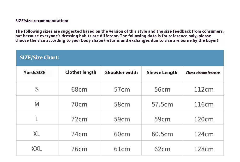 1. Asian sizes are 1 to 2 sizes smaller than European and American people. Choose the larger size if your size between two sizes. Please allow 2-3cm differences due to manual measurement. 2. Please check the size chart carefully before you buy the item, if you don't know how to choose size, please contact our customer service. 3.As you know, the different computers display colors differently, the color of the actual item may vary slightly from the following images.