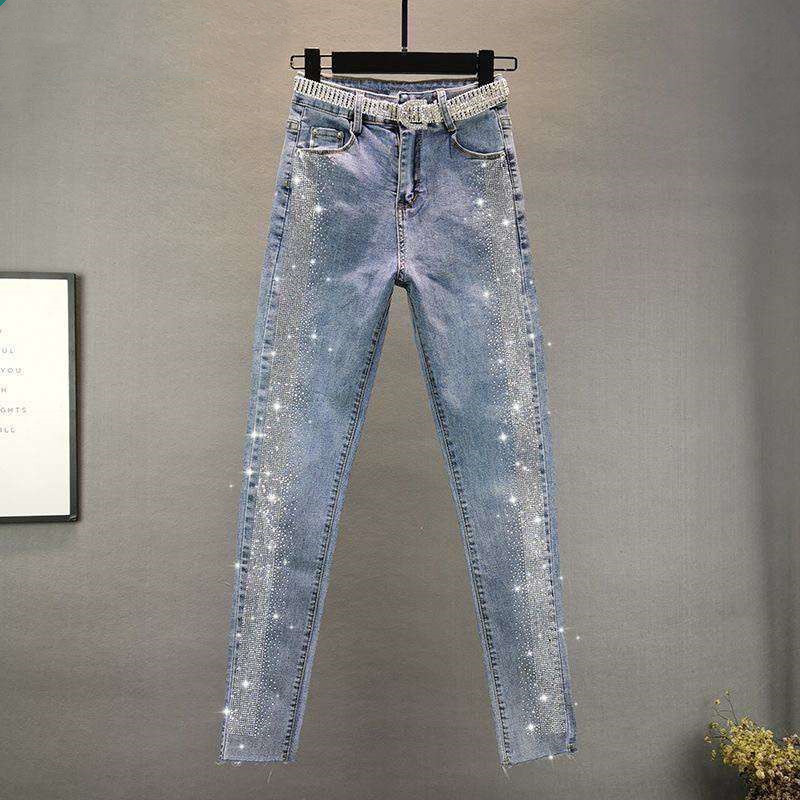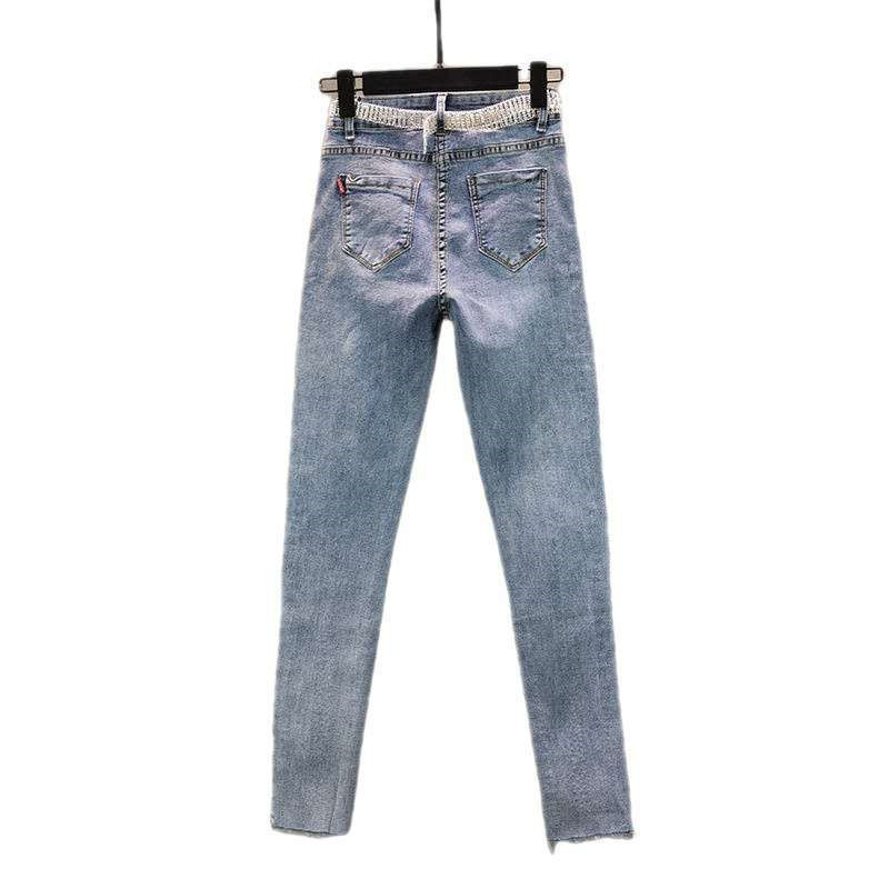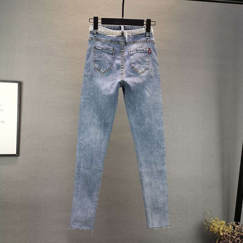 Features: high waist, pattern, beading, grinding white