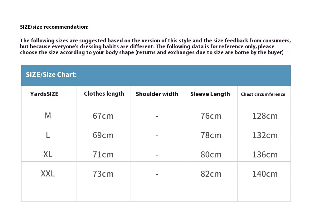 Size: M,L,XL,XXL