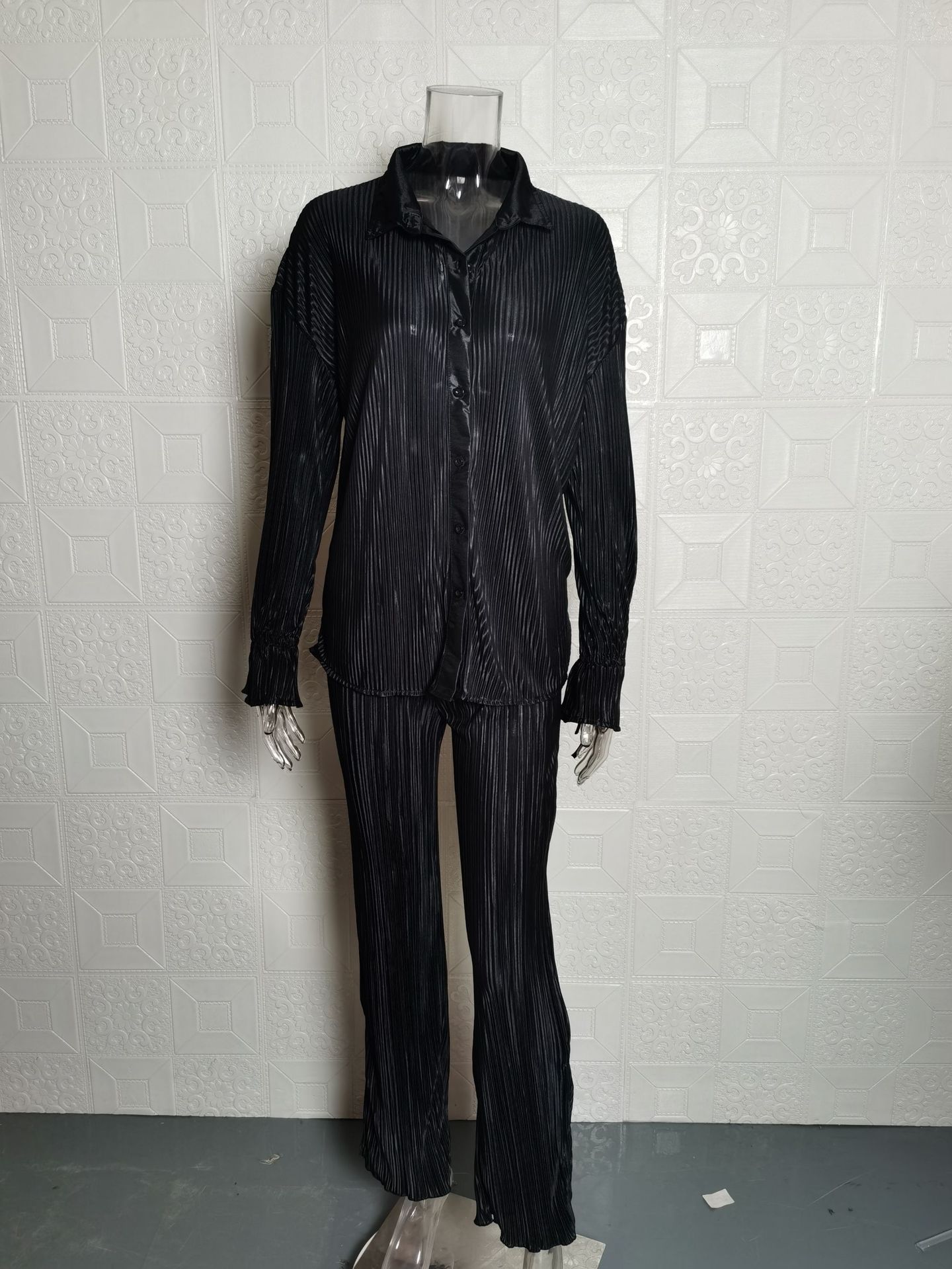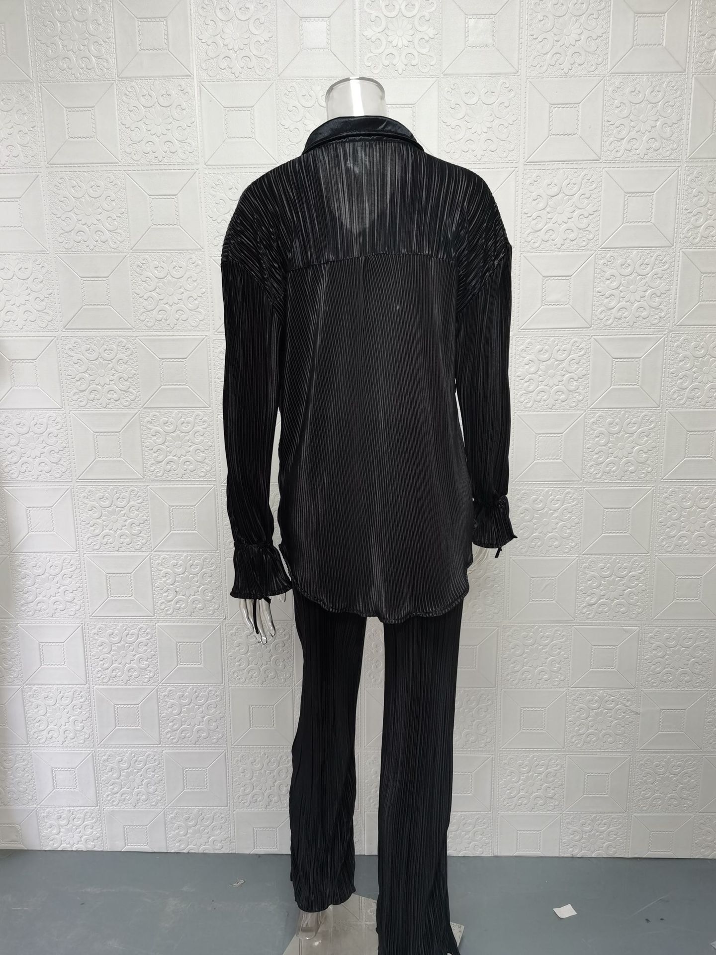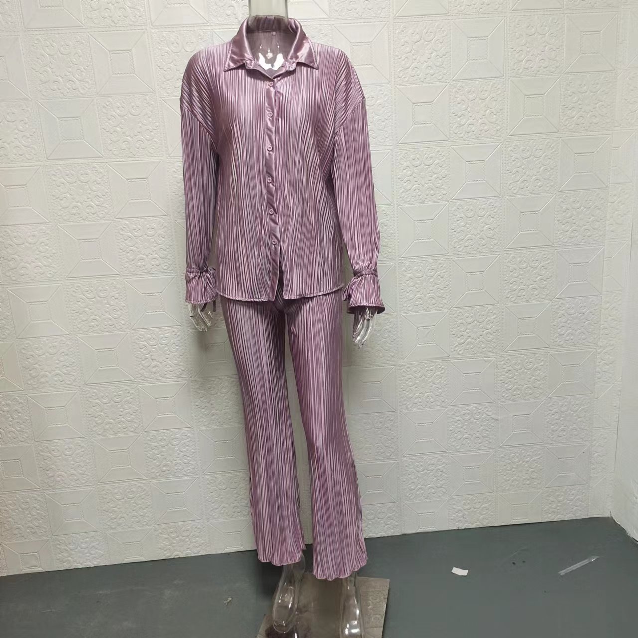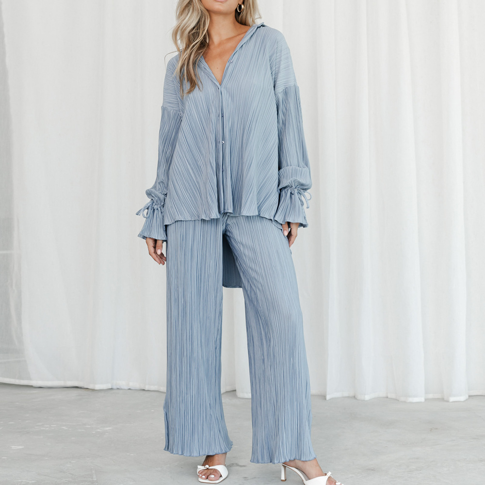 Fashion Suit Pleated Shirt Long Sleeve Split Pajamas Two-piece Set